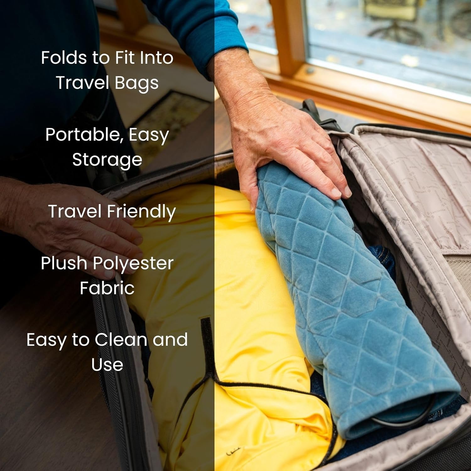 - The Travelers Bliss Massage Cushion can be plugged in just about anywhere. It comes with a two-prong power plug, a 5V to 12V USB conversion plug, and a12V car/truck adapter. The 12V USB cable comes in particularly handy on plane flights, where the on-board voltage at cabin seats is only 5V which the USB cable converts to a usable 12 V, for cushion operation. We like to keep things clean and tidy, by plugging it into a Power Bank, which can easily be slipped into the small storage pouch attached to the cushion.