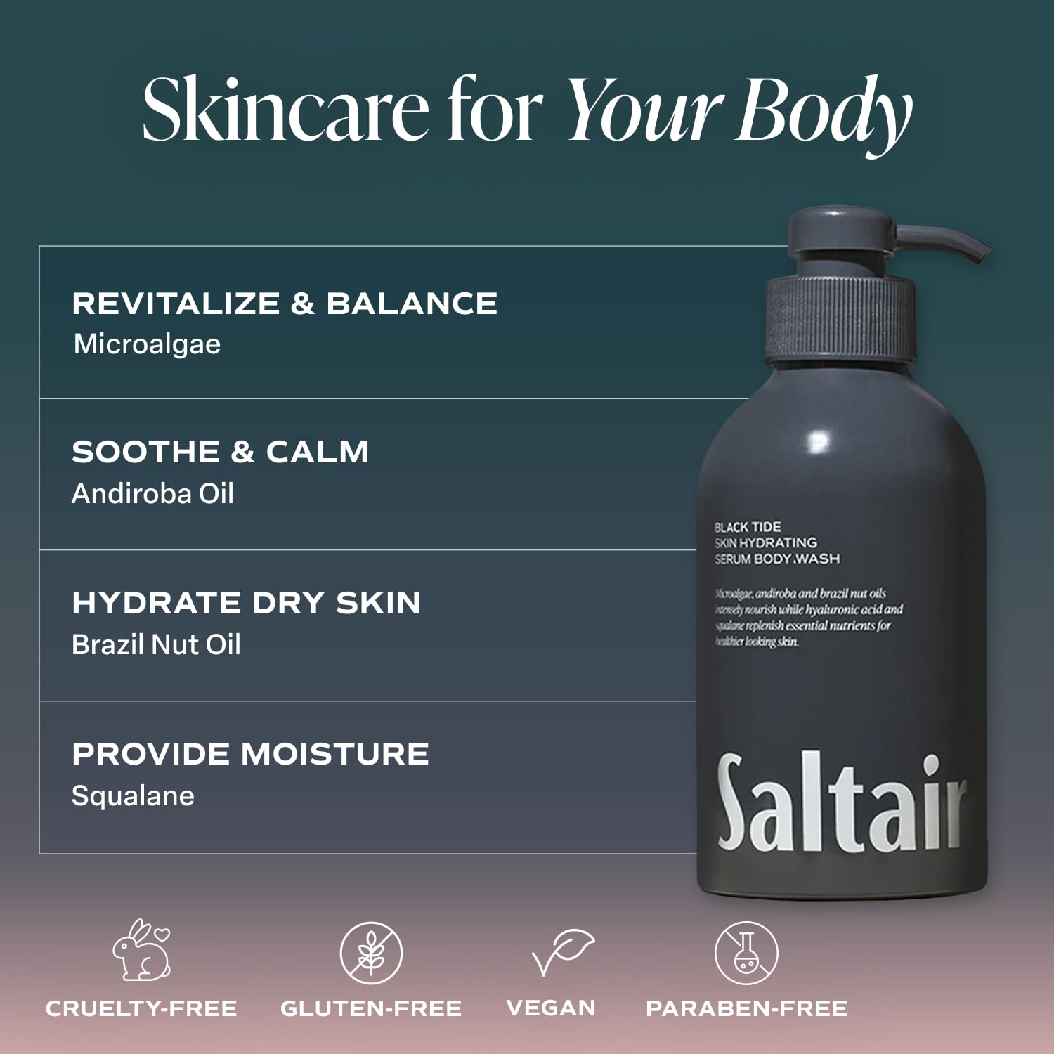 - GOOD FOR SKIN: All our products, including this two-pack body wash, are cruelty-free, gluten-free, vegan, and paraben-free. Everything we create is made with a body-positive vibe. Saltair - Body Care is Skin Care. Every Body is Welcome Here