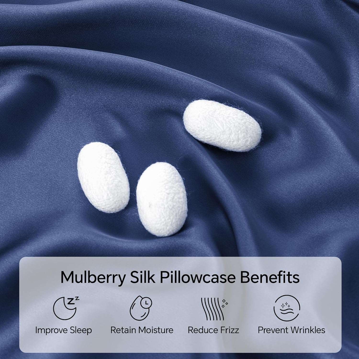 INFIIXSO Mulberry Silk Pillowcase for Hair and Skin, Silk Pillow Cases Queen Size Set of 2 with Hidden Zipper 20x30 Inches, Ultra Smooth and Soft Cooling Pillow Cases for Hot Sleepers(Navy, 2 Pack)
