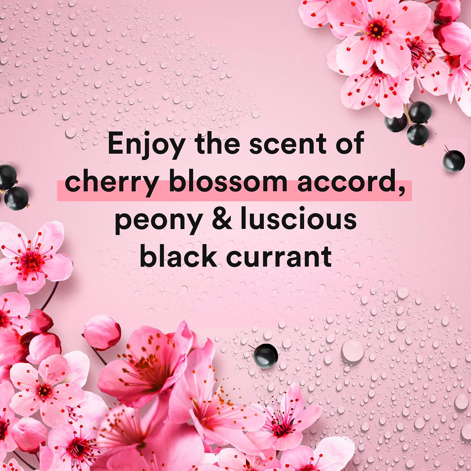 - Soak in the blooming long-lasting aroma of cherry blossom, sweet jasmine and luscious black currant.