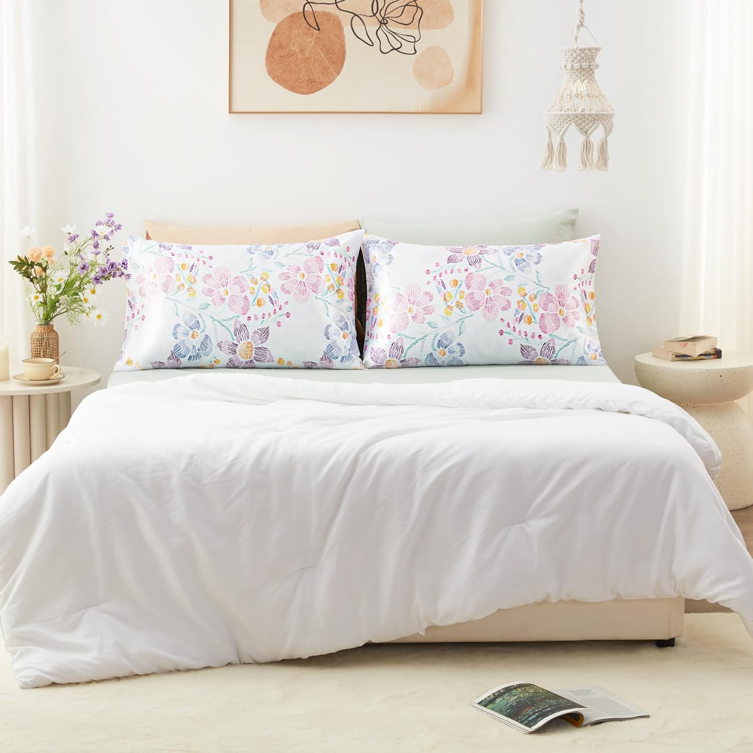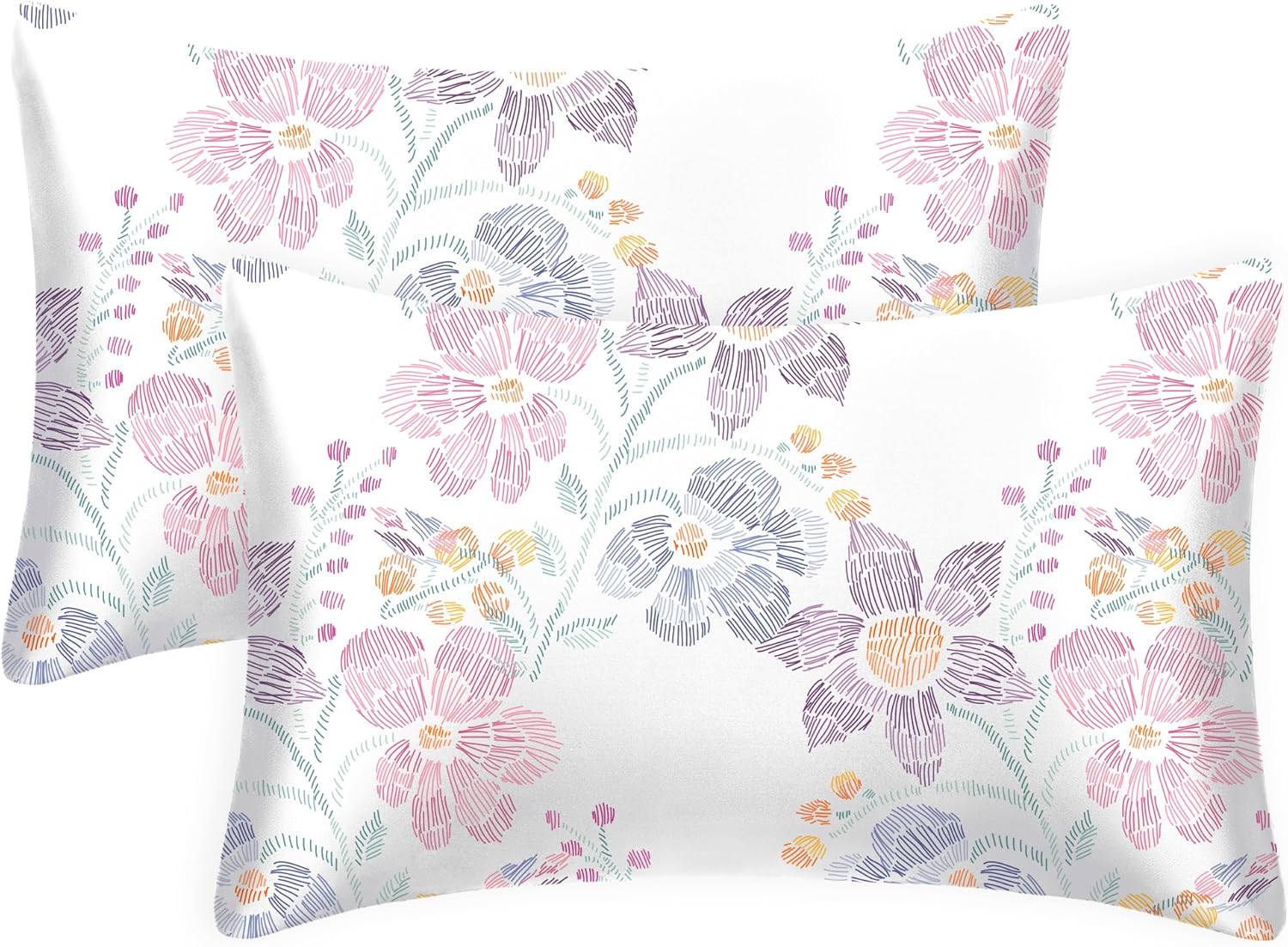 EXQ Home Satin Pillowcase for Hair and Skin Queen - Flower Silk Pillowcase 2 Pack 20x30 inches - Satin Pillow Cases Set of 2 with Envelope Closure