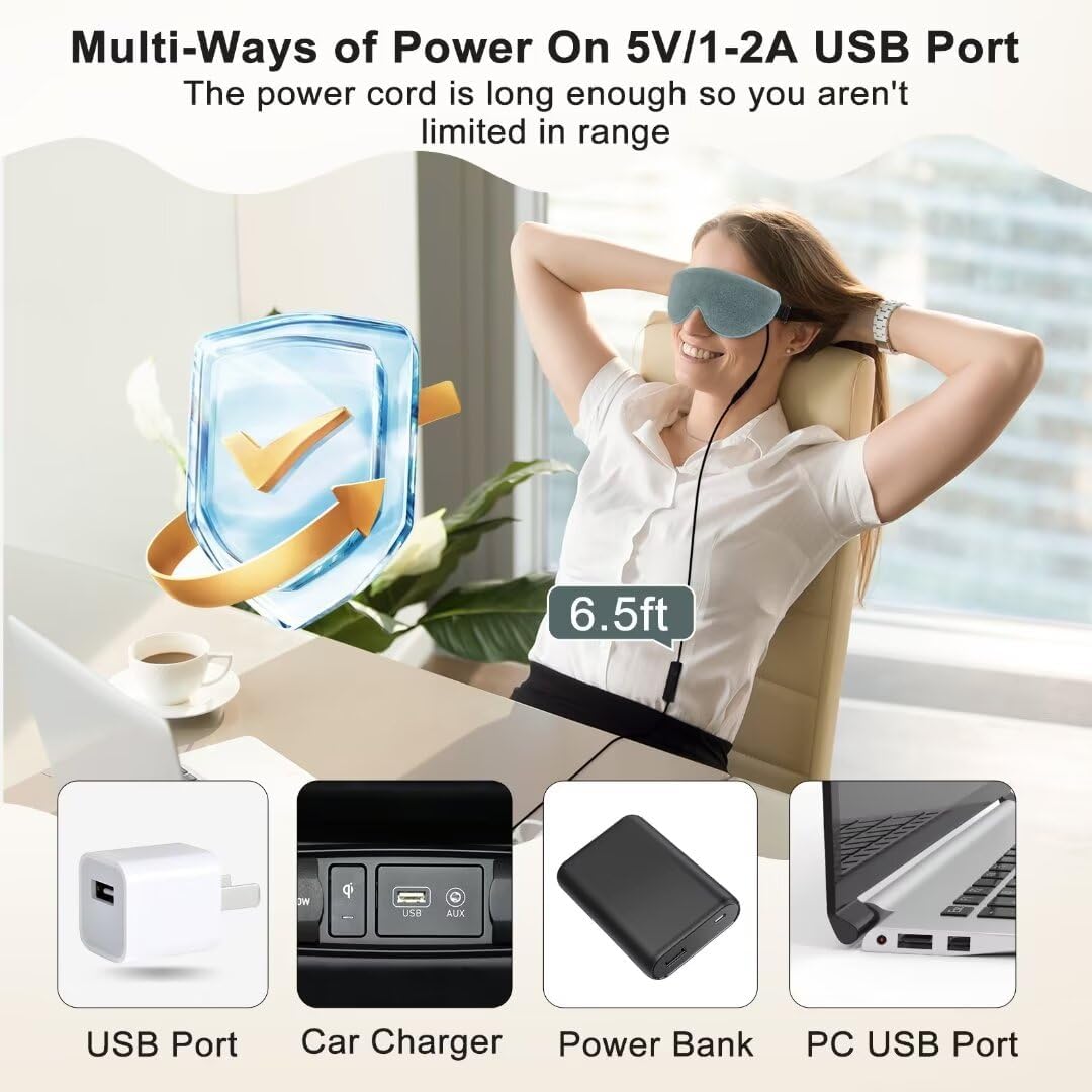 - IDEAL TEMPERATURE AND TIME: Say goodbye to traditional steam and microwave eye masks that only provide a few minutes of heat. Our electric eye masks heat up quickly in just 5 seconds and offer stable temperature control with 3 levels ranging from 104℉ to 140℉. You can also set it to automatically power off after 20/40/60 minutes, no need to wait for long time. It is more relaxing to wear it before going to bed as the temperature effectively penetrates your skin and let you into a peaceful sleep.