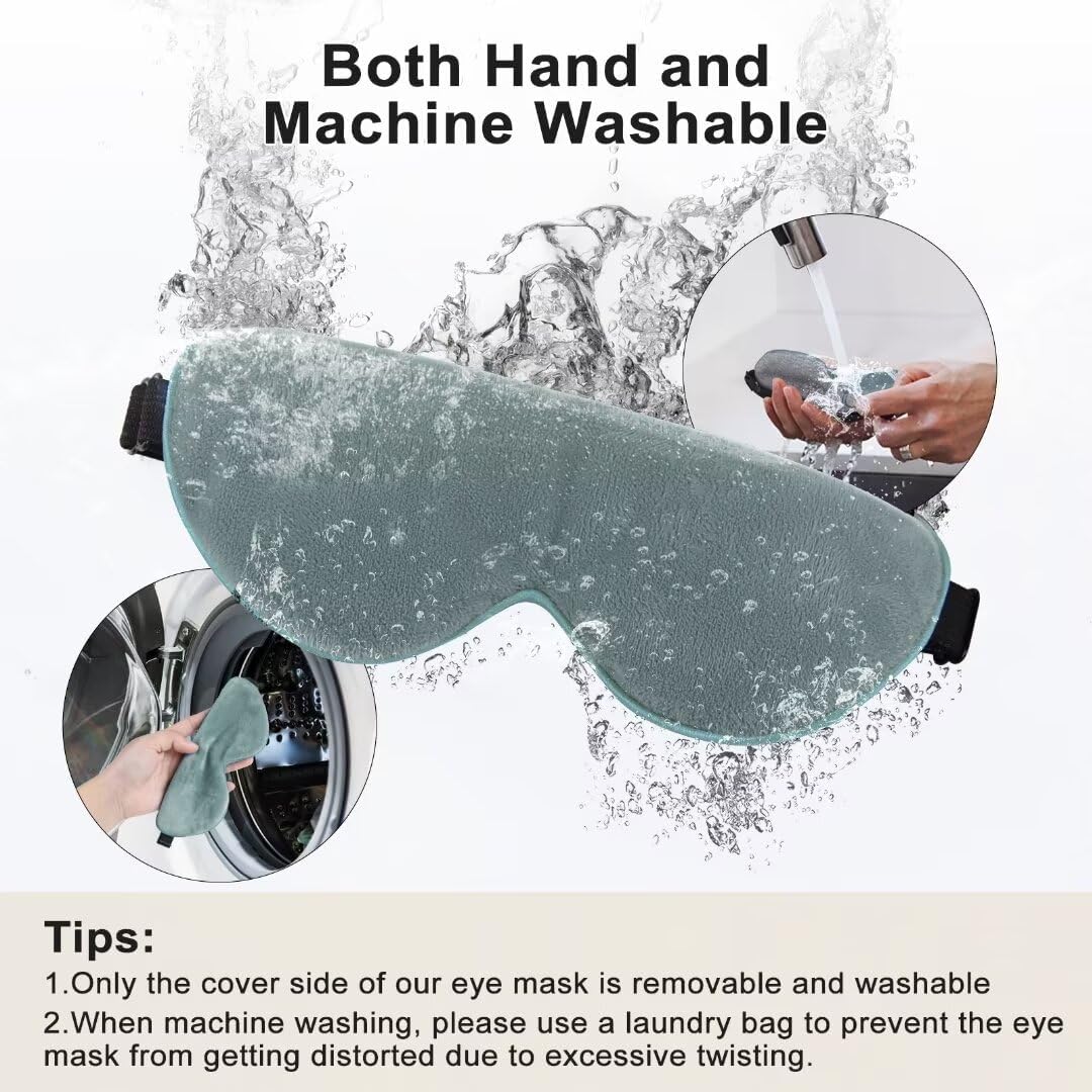- DETACHABLE & WASHABLE COVER & ADJUSTABLE HEADBAND: The professional eye mask for dry eyes is designed with a detachable and washable cover, allowing for easy cleaning. Regular cleaning not only improves the health index of the eyes but also helps prevent eye infections. Additionally, the soft headband features an adjustable buckle design, high elasticity to ensure a comfortable fit without applying excessive pressure on the eyes.