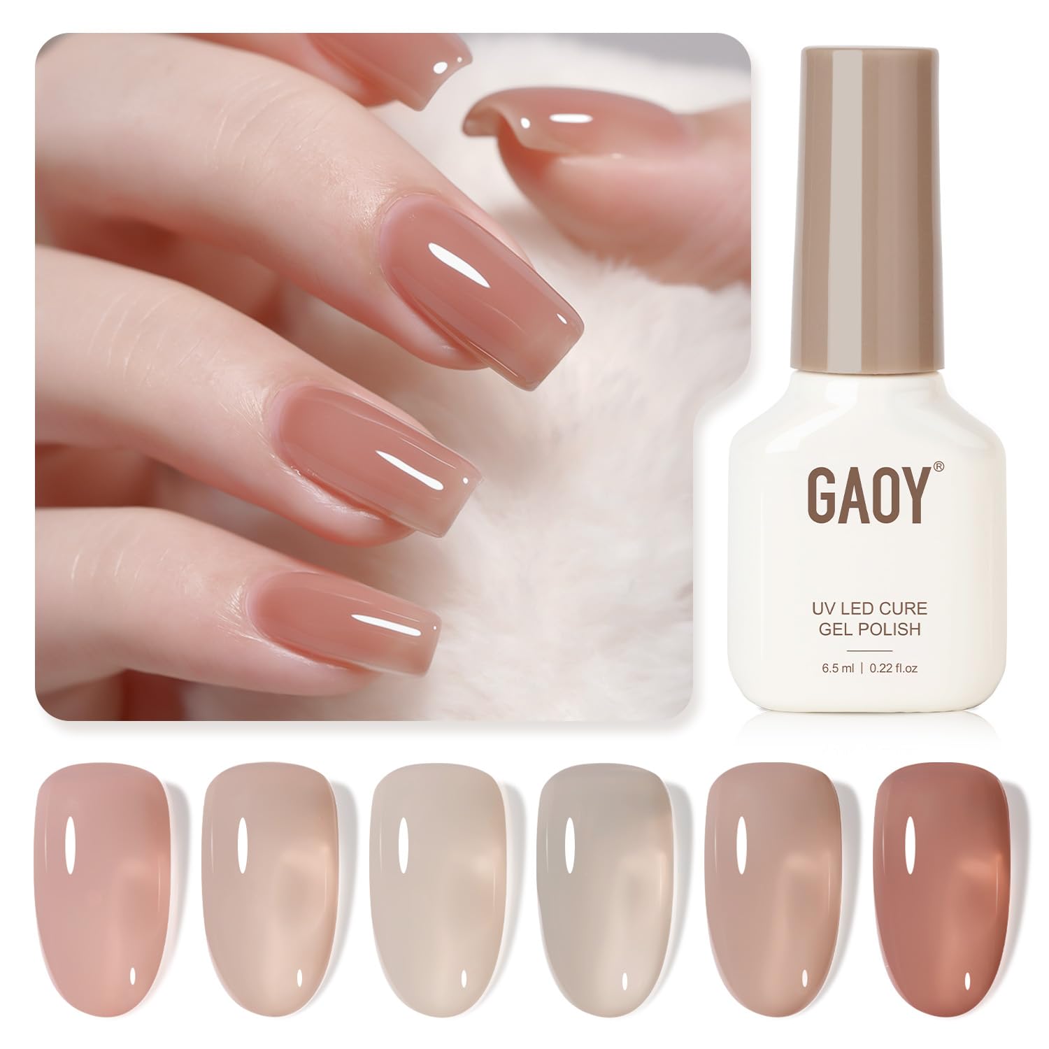 GAOY Jelly UV Gel Nail Polish of 6 Transparent Nude Pink Gray Colors Sheer Gel Polish Kit for Salon Manicure and Nail Art DIY at Home, Rose Quartz