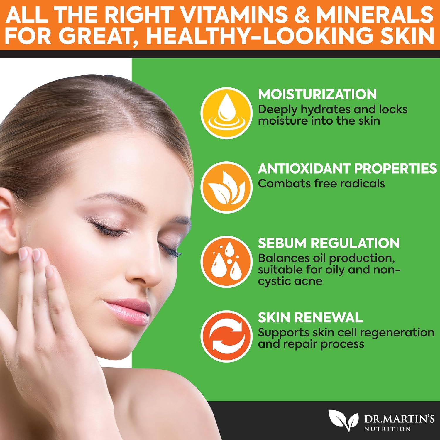 - LOOK & FEEL YOUNGER: Our anti-aging supplement is packed with essential fatty acids that support your skin’s natural barrier, maintaining hydration for a soft, smooth feel. Vitamin E combats damage from free radicals and environmental stressors, helping to reduce the appearance of fine lines and wrinkles for a youthful complexion. The zinc content helps balance sebum production, reducing non-cystic acne and promoting clear, healthy skin. Embrace a radiant, younger-looking you!