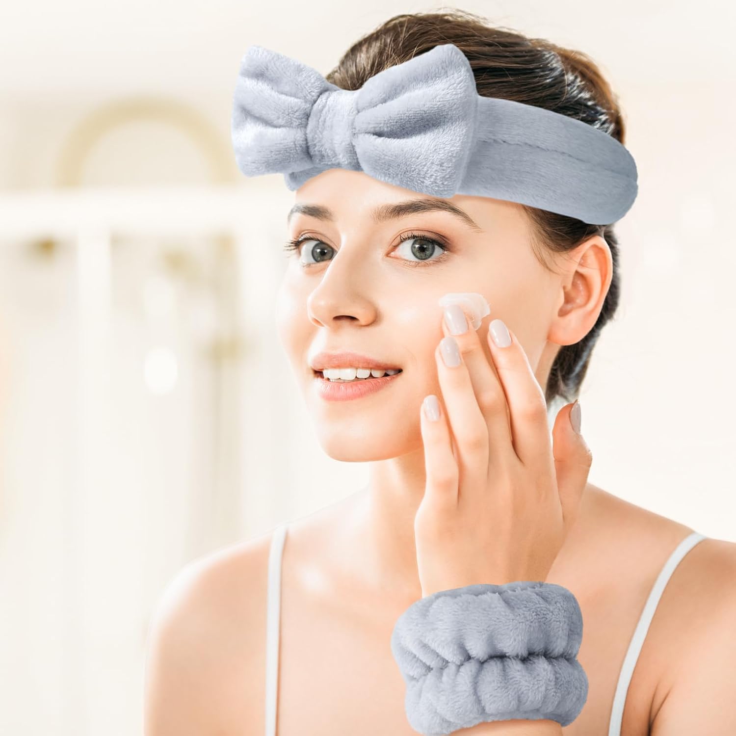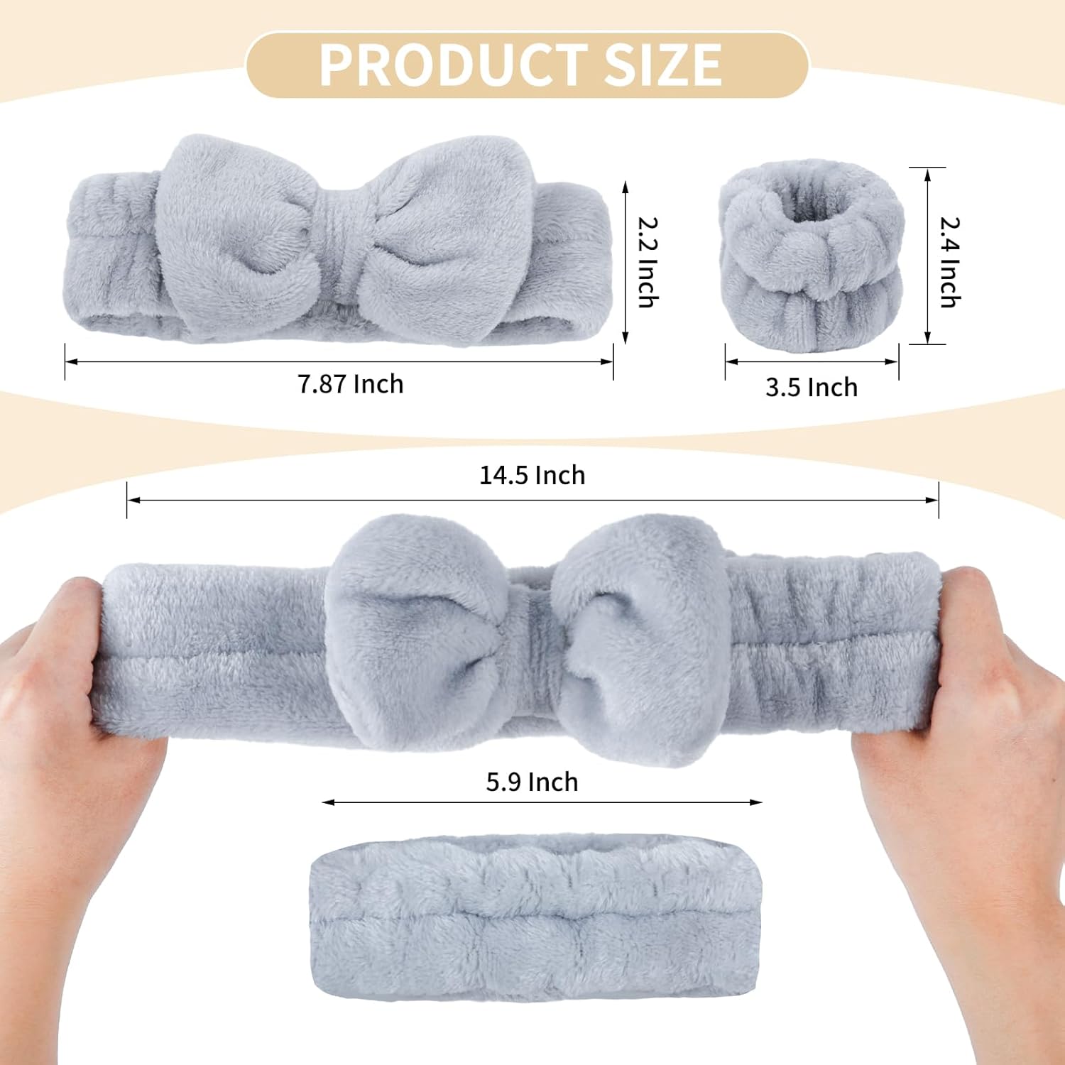 6 Pcs Spa Headband and Wristbands,Coral Fleece Makeup Cosmetic Headband for Washing Face, Bow Headbands for Shower Terry Cloth Headbands for Women Facial Hair Band