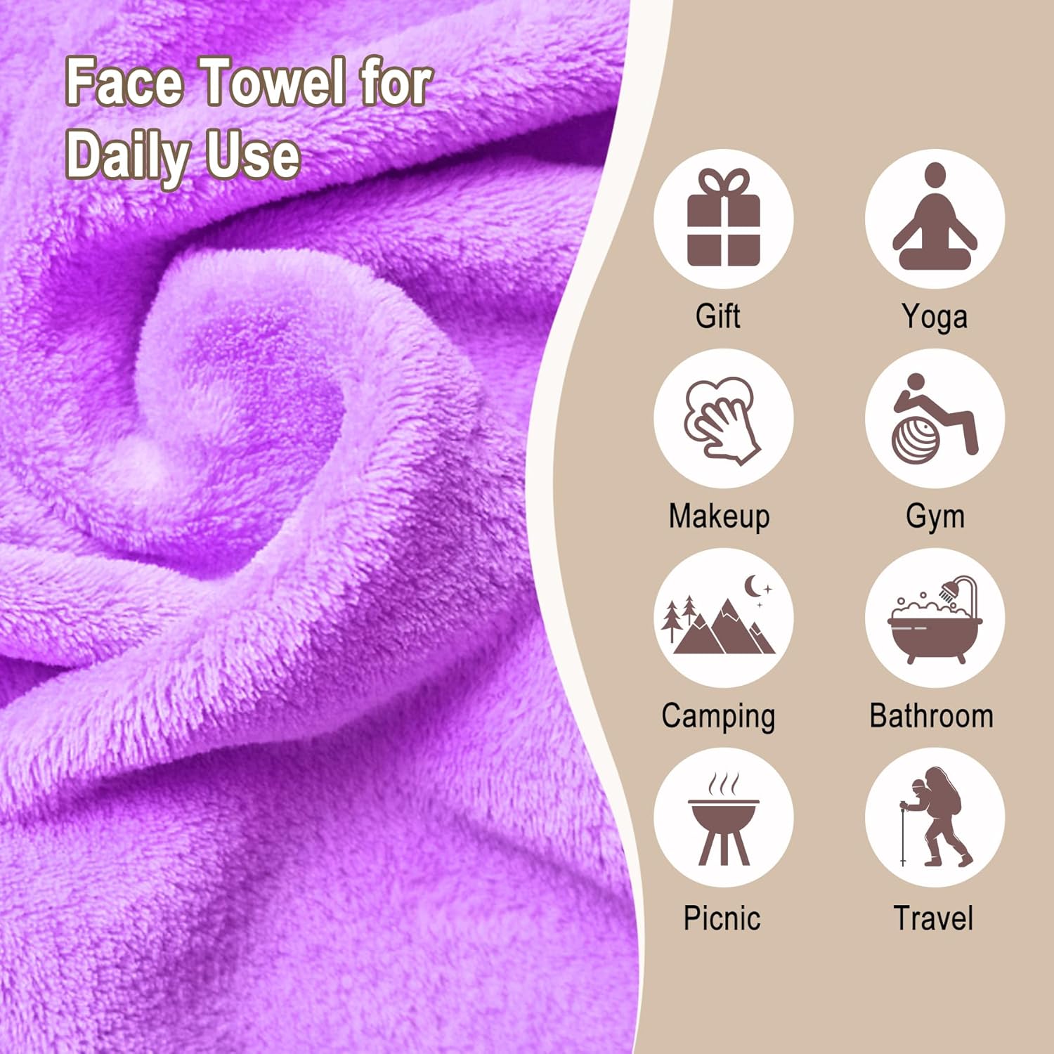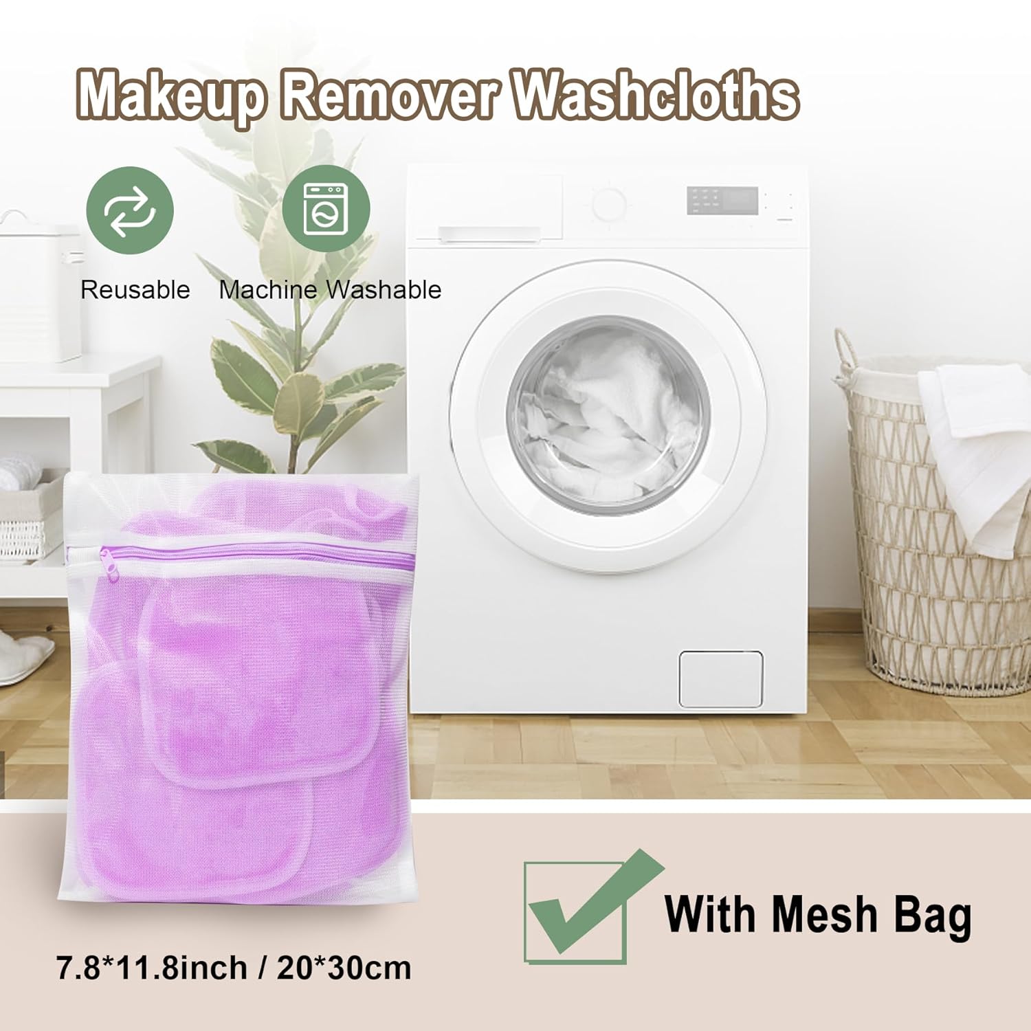 KODAMO Makeup Remover Cloth, Reusable Makeup Remover Pads Washable Travel Bag, Microfiber Makeup Removal Face Wash Cloths with Just Water, 12 Pack/Violet