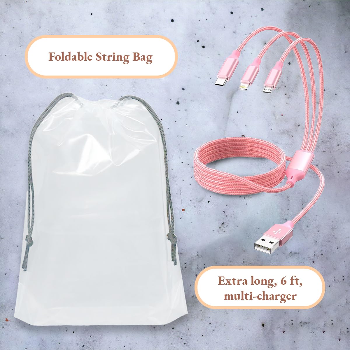 - TSA Compliant Kit Inludes: Large Capacity Toiletry Bag with Hanger, Extra Long (6.5 ft) Multi Phone Charger, Shampoo Body Cleansing Bar, Conditioner, Moisturizer, Deodorant, Sleep Mask, Lavender Diffuser, Travel Razor with Case, Earplugs, Bamboo Toothbrush, Organic Toothpaste Tablets, Floss Picks, Makeup Remover Balm, Laundry/Carry Bag, Sewing Kit, Cotton Pads, Q-tips, Nail File. Travel essentials and Travel-Size Toiletries for grooming, hygiene, oral care and comfort for women all in a spa gift box.