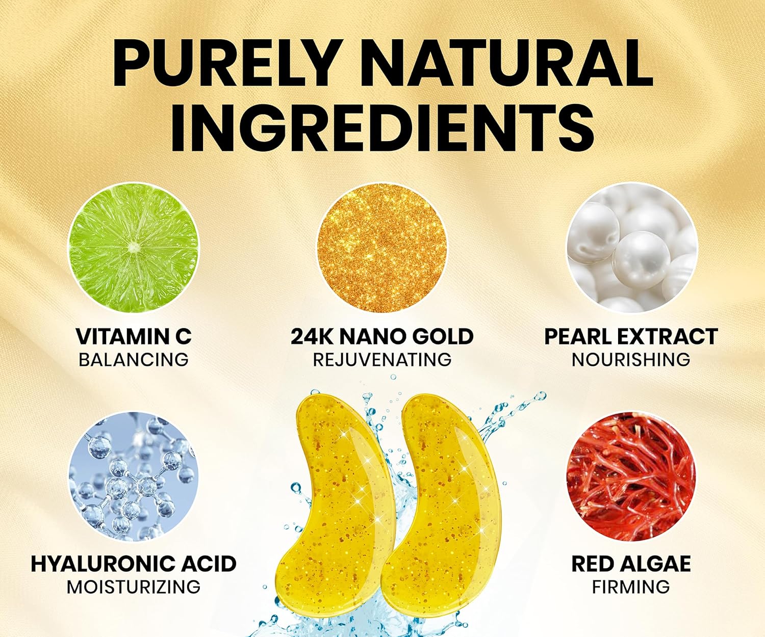 - FORMULATED FOR YOU: Indulge in luxury with your collagen eye patches, gentle for all skin types. Made with vitamin c, hyaluronic acid, pearl extract, and red algae. Never animal tested.