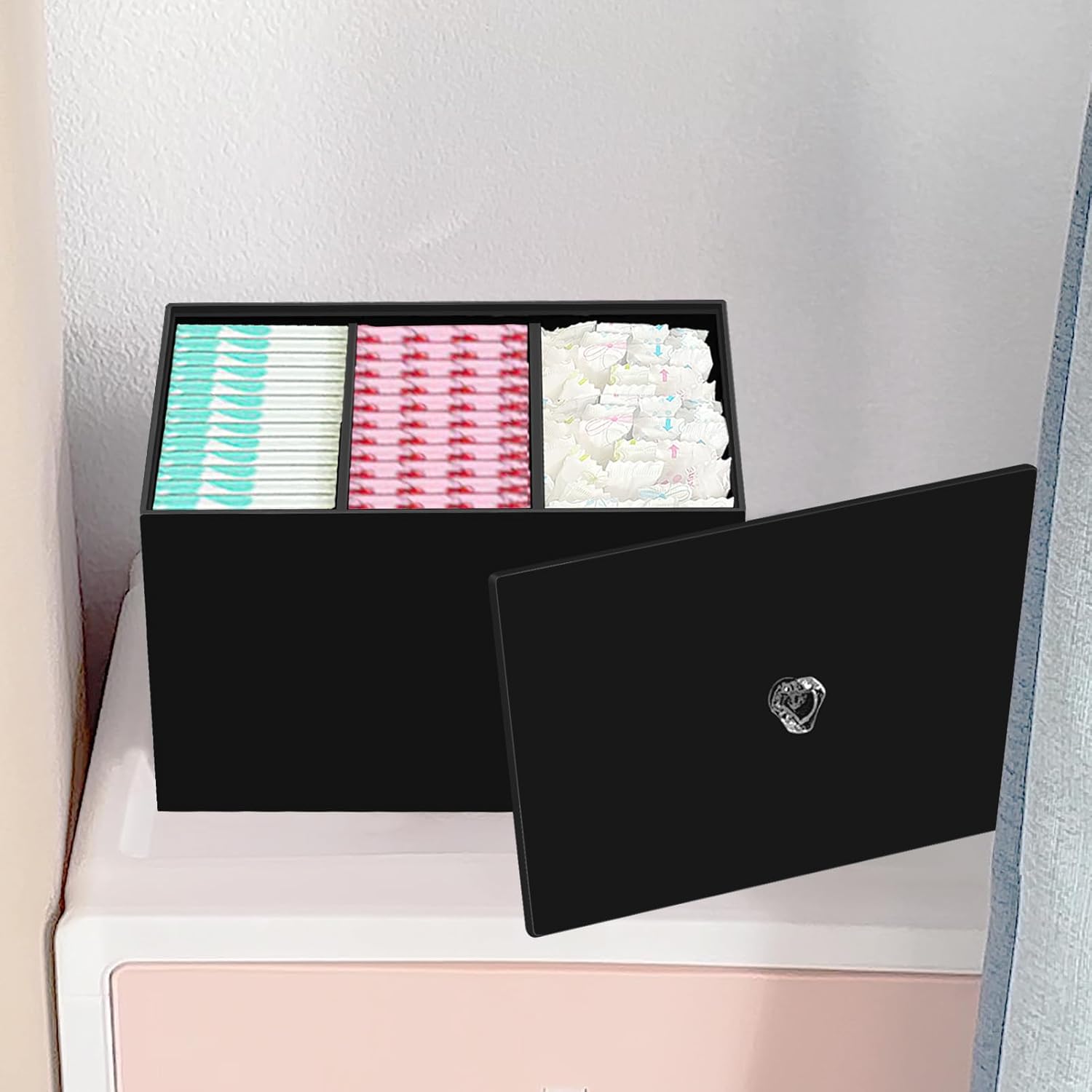 Tampon Box for Bathroom, Tampons and Pads Storage Holder, Women Period Organizer Container, Black