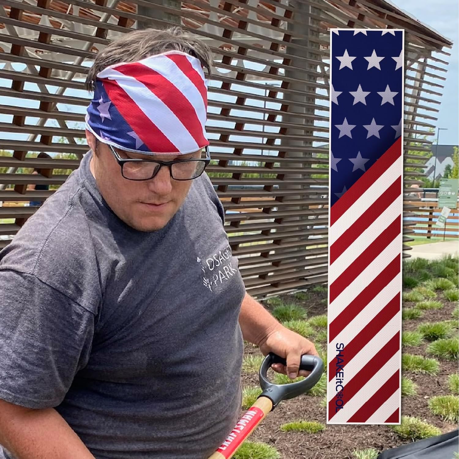 SHAKEitCOOL Original Cooling Towel – Be Cool in Style - Heat Relief, Soft, Lightweight, Sun Protection, Easy Clean - Perfect for Biking, Hiking, Running, Yoga, Golf, Gym, Baseball - Stars & Stripes