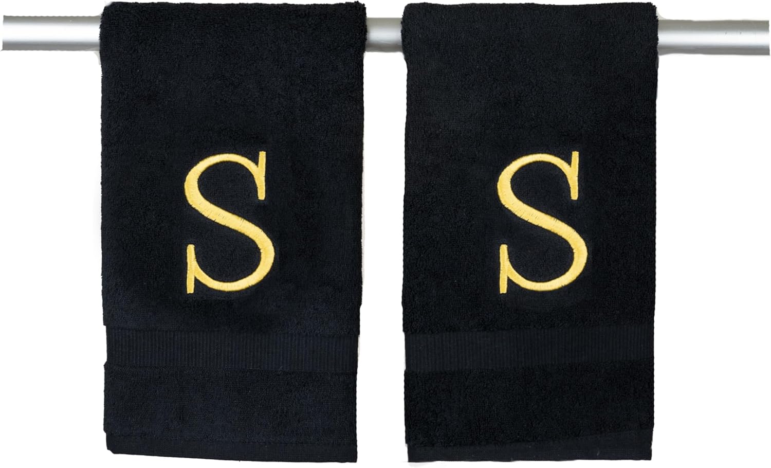Black, Letter Hand Towel for Bathroom - Monogrammed Initial Hotel Quality Decorative Embroidered Towel for Powder Room, Spa - GOTS Organic Certified - Pack of 2 - Letter S