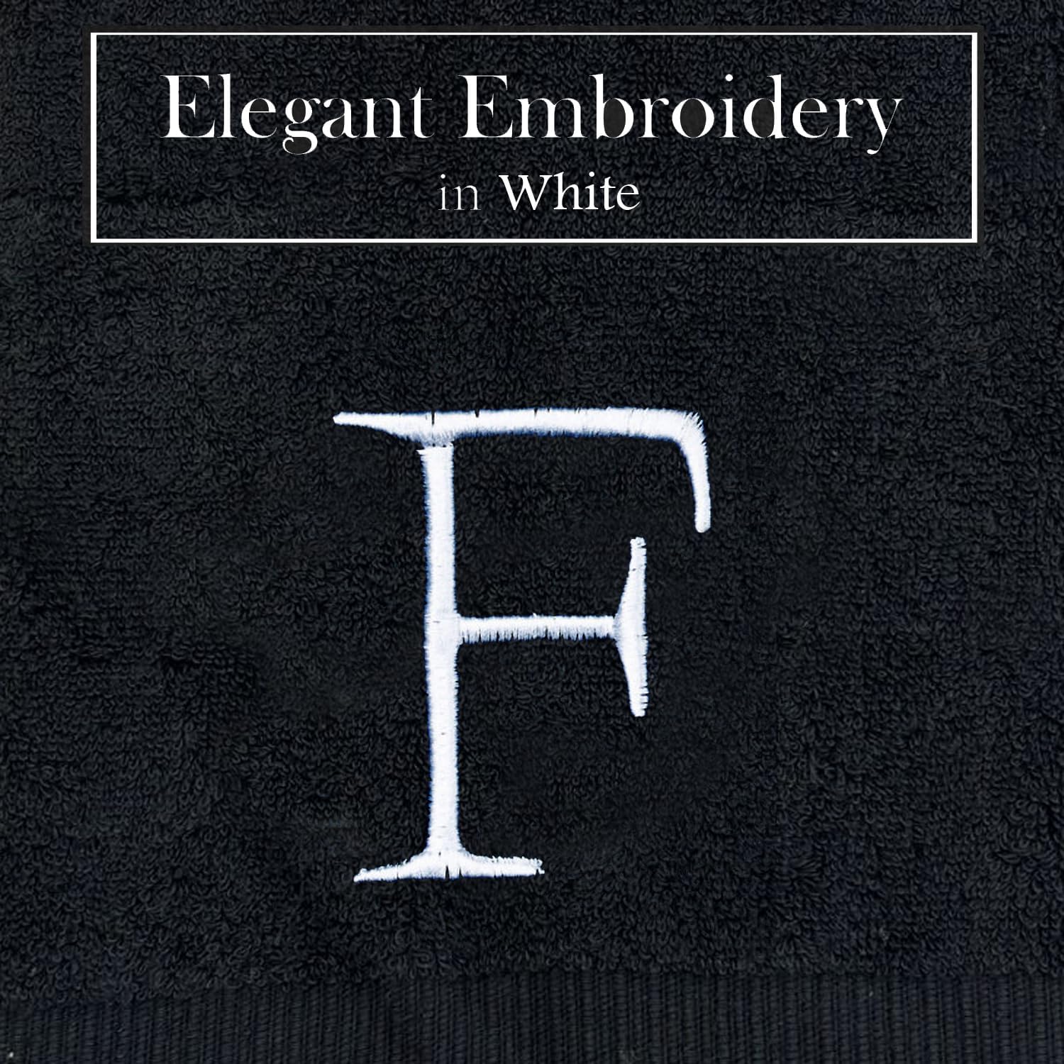 Black Monogrammed Hand Towel for Bathroom - Initial Hotel Quality Decorative Embroidered Luxury Towel for Powder Room, Spa - GOTS Organic Certified - Pack of 2, Letter F