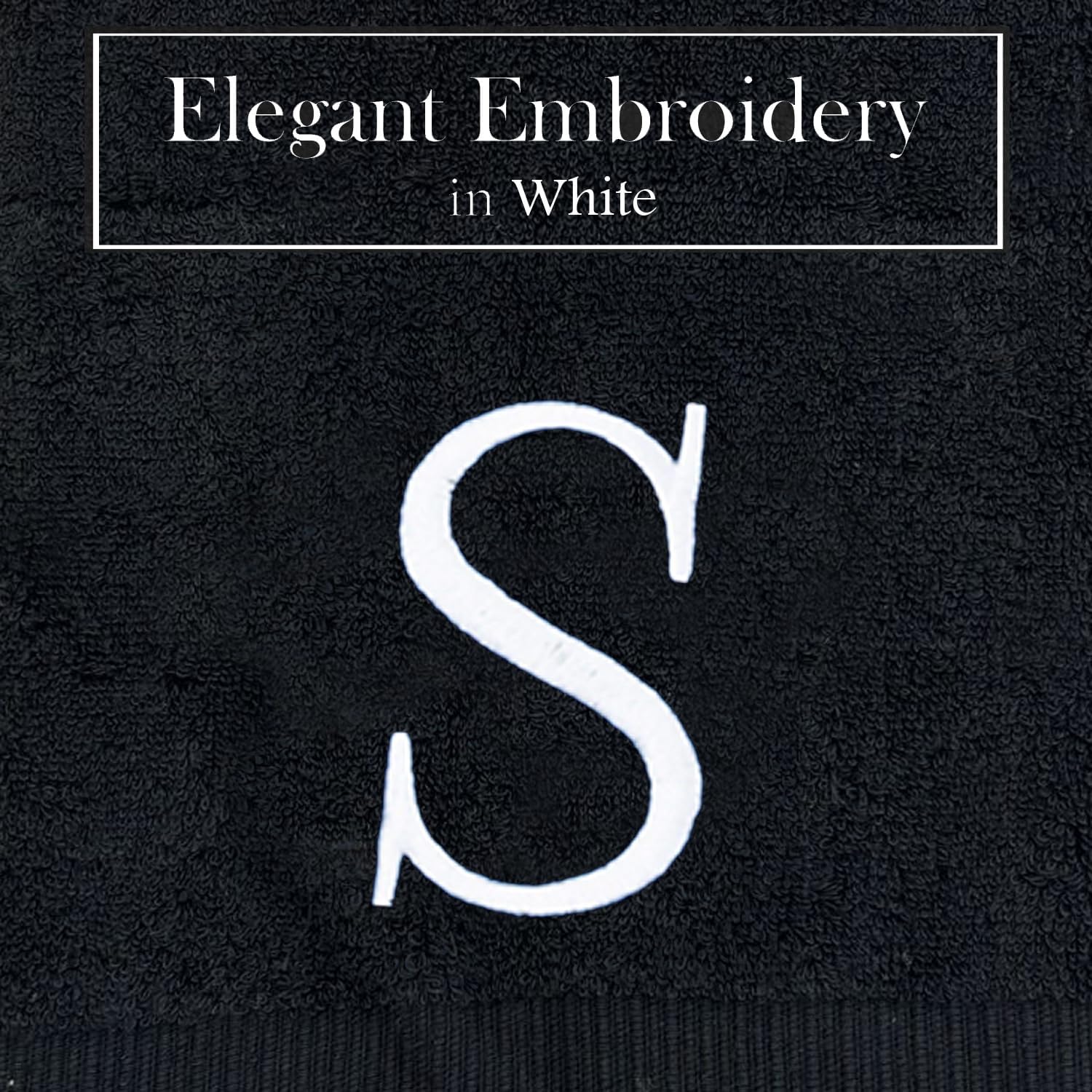 Black, Letter Hand Towel for Bathroom - Monogrammed Initial Hotel Quality Decorative Embroidered Towel for Powder Room, Spa - GOTS Organic Certified - Pack of 2, Letter S