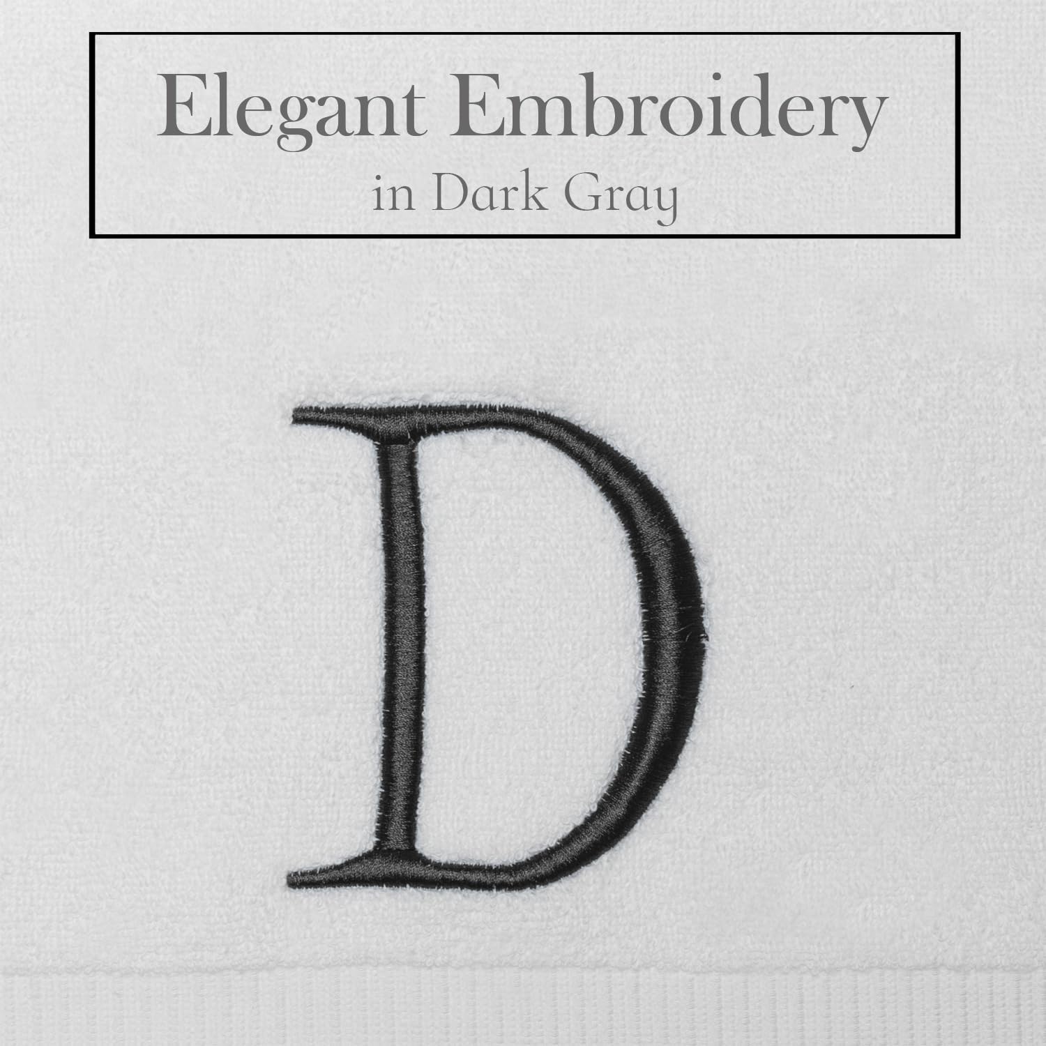 - Premium Quality - High quality durable soft rich monogram letter hand towels in white cotton with dary gray stitching