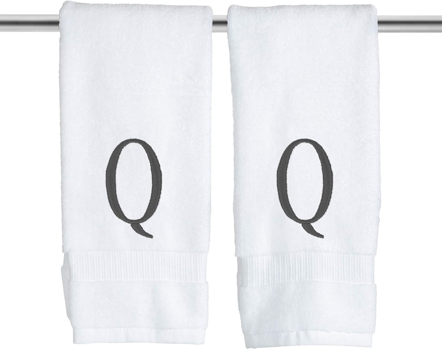 White Powder Room Hand Towel - Monogram Initial Hotel Quality Decorative Embroidered Luxury Towel for Spa - GOTS Organic Certified - Set of 2 Dark Gray Letter Q