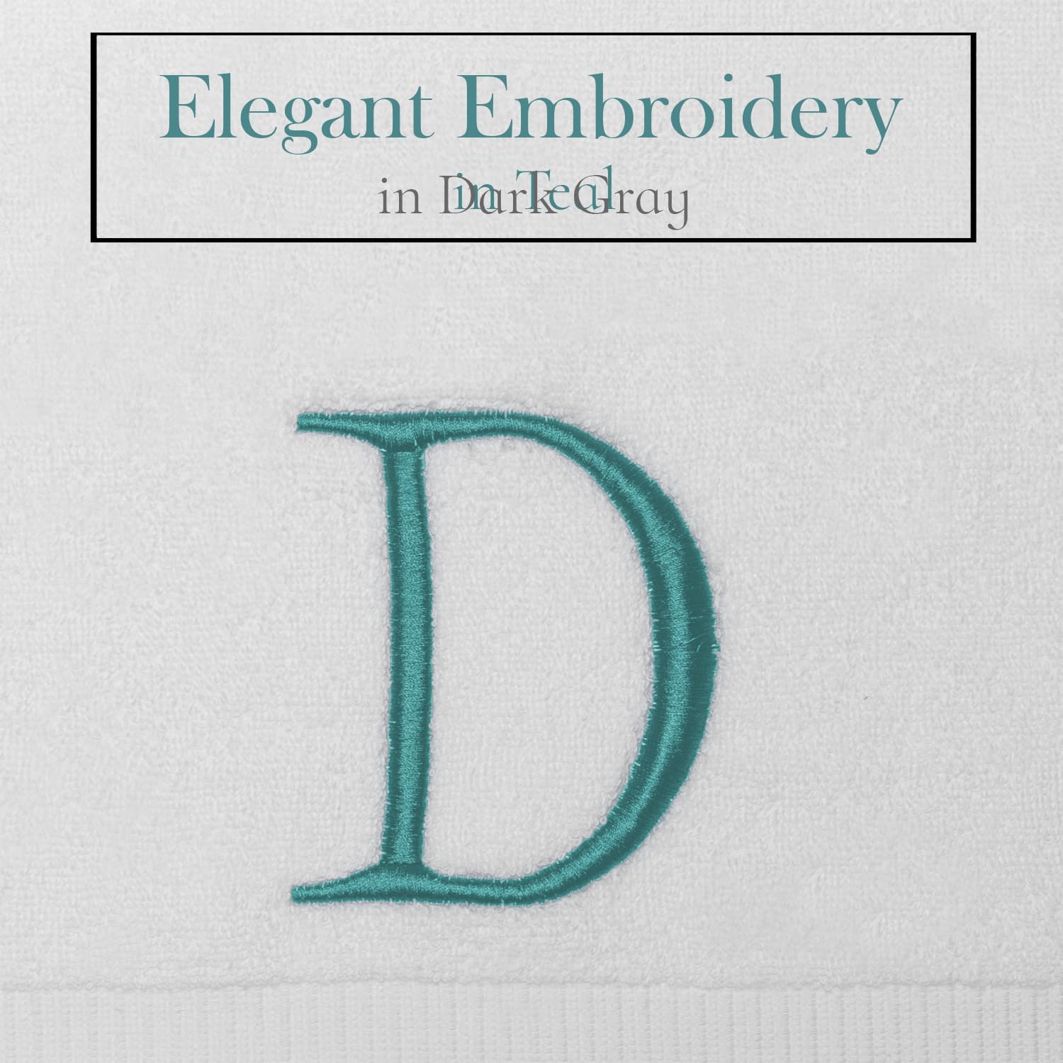 - Premium Quality - High quality durable soft rich monogram letter hand towels in white cotton with teal stitching