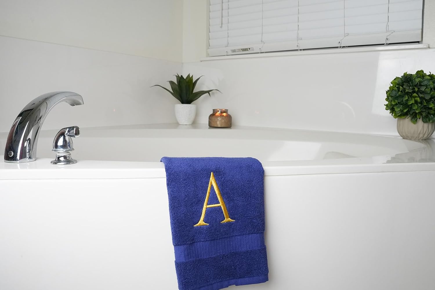 - Premium Quality - High quality durable soft rich monogram letter hand towels in navy cotton with gold stitching