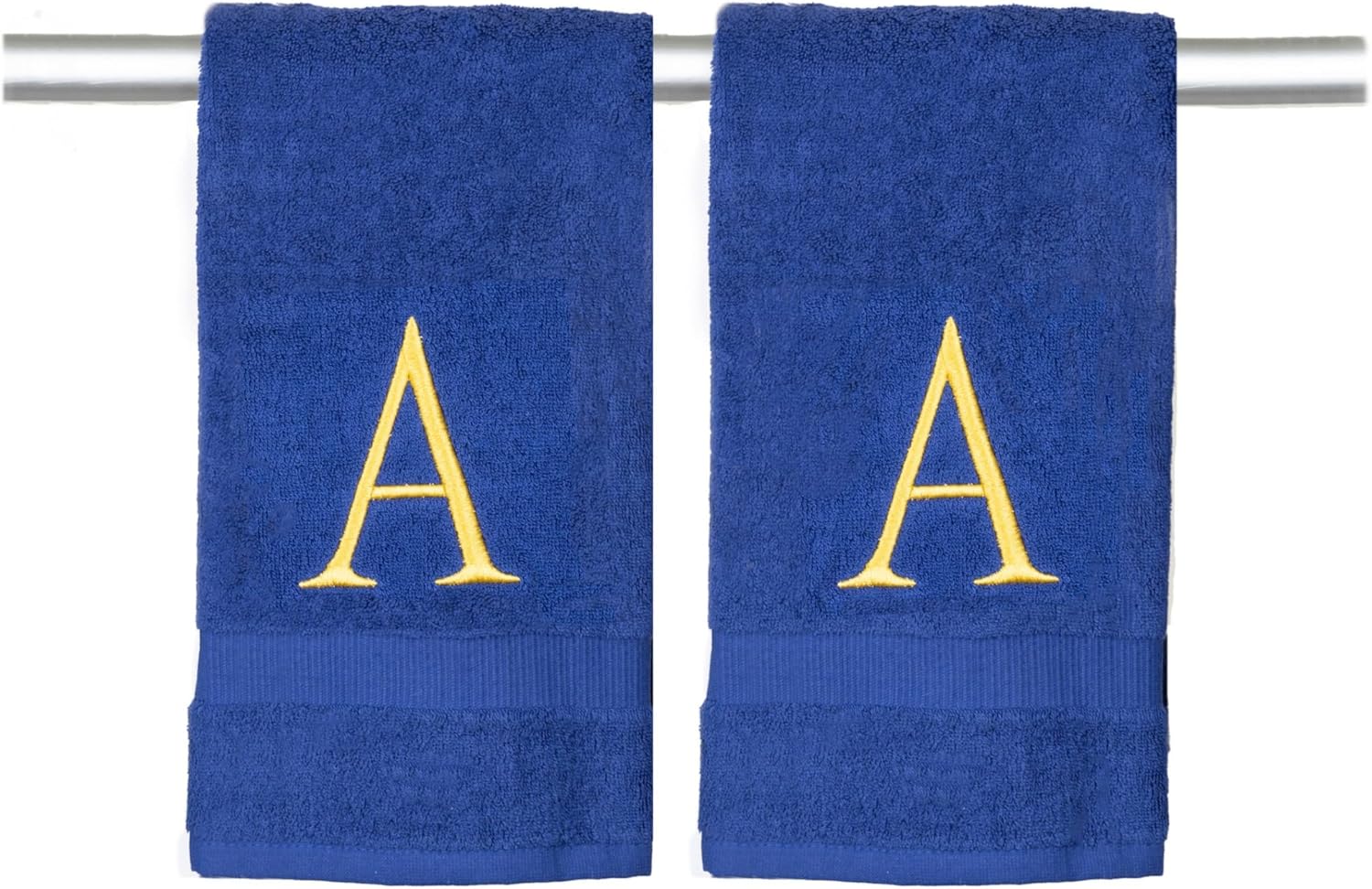 Navy Monogrammed Hand Towels for Bathroom - Luxury Hotel Quality Personalized Initial Decorative Embroidered Towel for Powder Room, Spa - GOTS Organic Certified - Set of 2 Gold Letter A