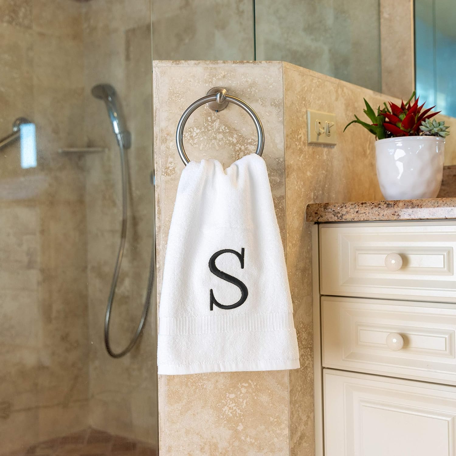 Dark Gray, Letter Hand Towel for Bathroom - Monogrammed Initial Hotel Quality Decorative Embroidered Towel for Powder Room, Spa - GOTS Organic Certified - Pack of 2, Letter S