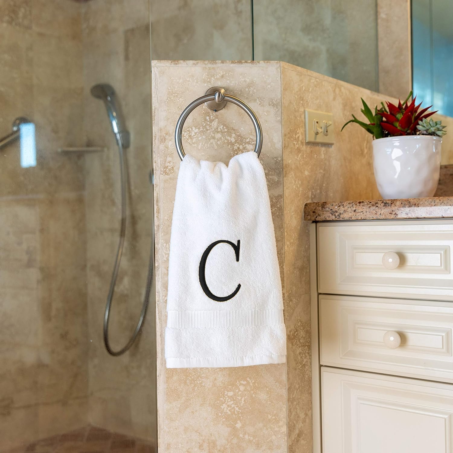 - Premium Quality - High quality durable soft rich monogram letter hand towels in white cotton with black stitching