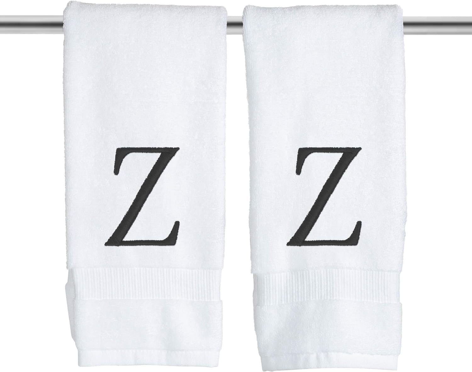 Black Monogram Hand Towel for Bathroom - Monogrammed Initial Hotel Quality Decorative Embroidered Luxury Towel for Powder Room, Spa - GOTS Organic Certified - Set of 2 Letter Z
