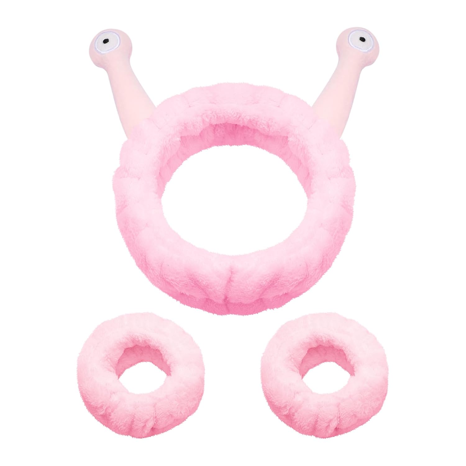 Soft Spa Headband and Wristbands for Face Washing, Cute Snail Makeup Headbands Elastic Skincare Hair Band Shower Head Wraps Hair Accessories for Women Girls