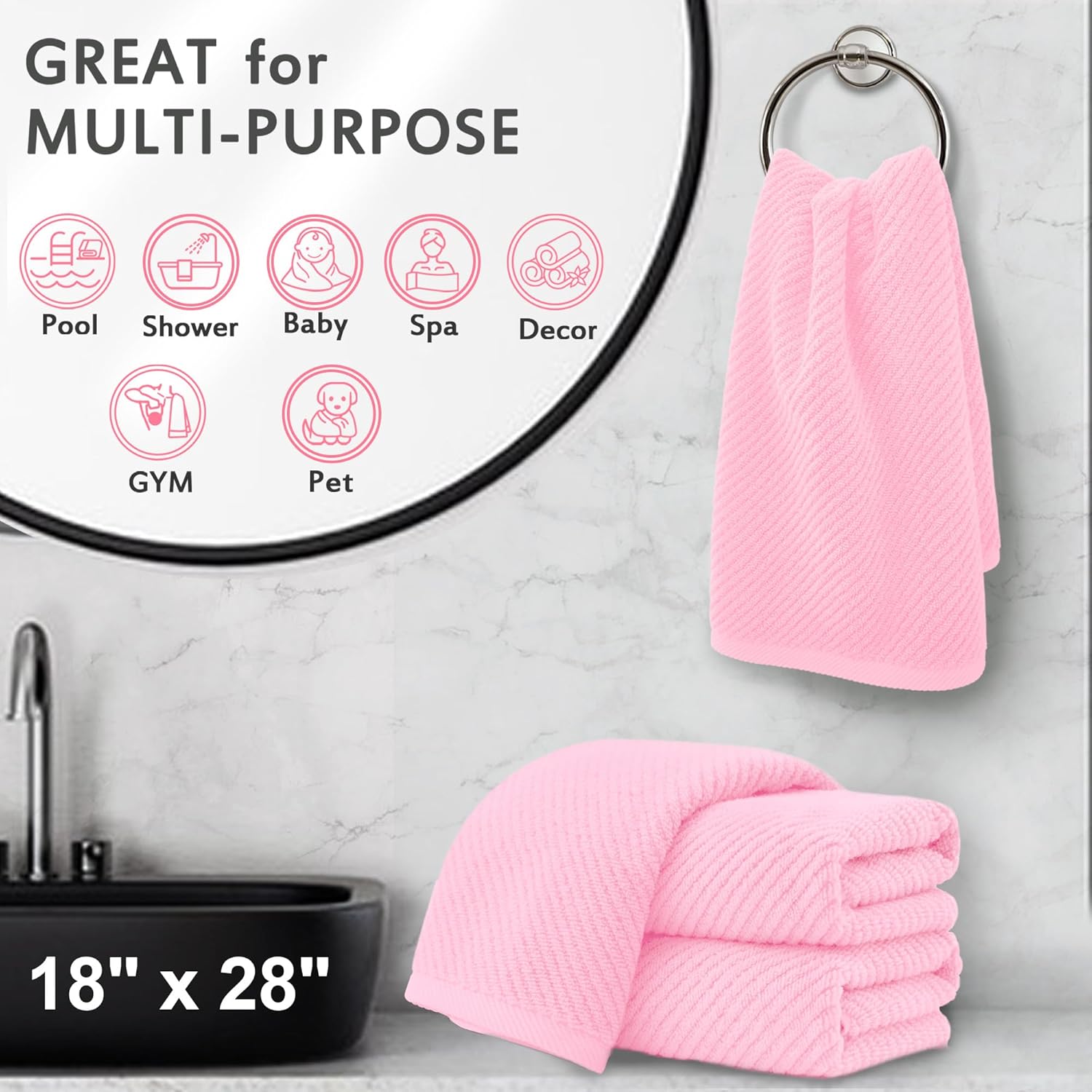 VOOVA & MOVAS Pink Bathroom Hand Towels Set of 4, Large 18" x 28" - 100% Cotton | Quick Dry | Light Weight | Thick | Soft | Absorption, Luxury Hand Towels for Showering, Bathroom Essentials Set