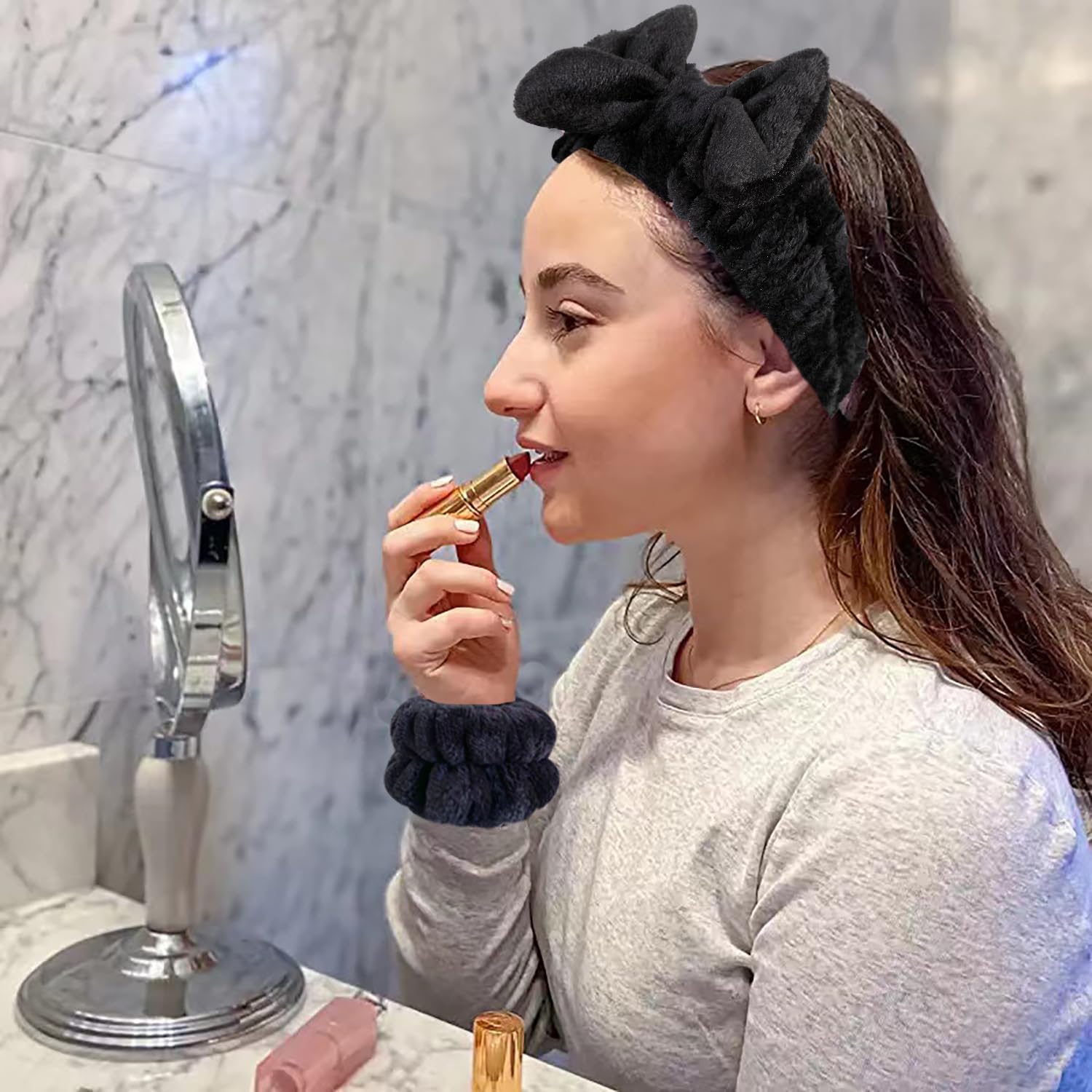 - 【Soft and Comfortable】Cow print and balck spa headband and wristband set are so adorable! The fluffy skincare headband fit is snug and the material is soft. This cow headband holds the hair really well too.The face wash headband and wristband set is 100% elastic microfiber fleece, ridiculously soft, comfortable, skin-friendly. And the makeup headbands are washable and reusable, ultra absorbent water, easy to wear.Head wraps can be washable and resuable.