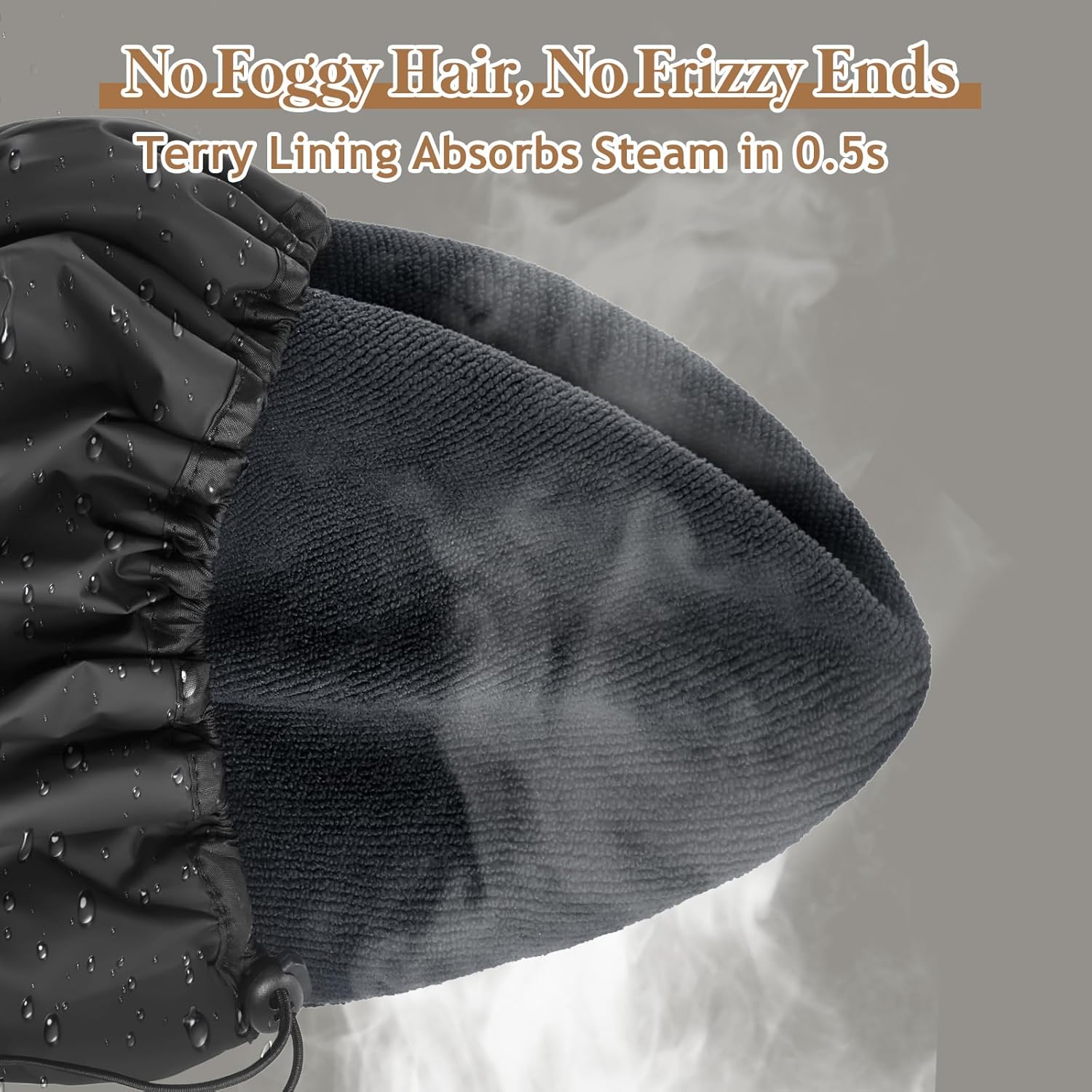 - [SOFT, FRIZZ-FREE PROTECTION]: Indulge in premium care with our terry-lined interior. This soft, absorbent lining cushions your hair to prevent frizz and breakage, and enhances deep conditioning treatments by locking in moisture, making this protective shower bonnet your essential tool for spa-like care at home.