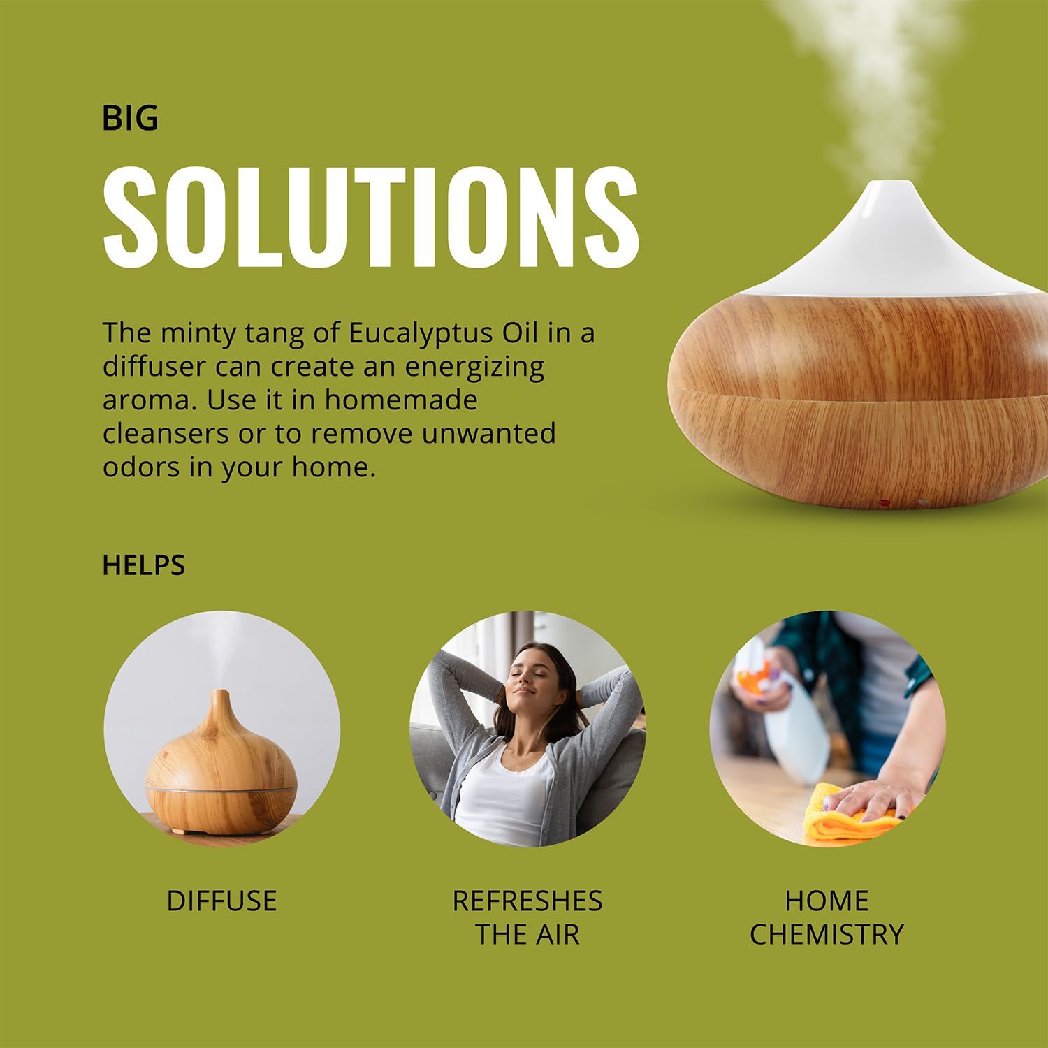 - Neutralizes Odors – Get that fresh and clean smell with the fragrances of peppermint and eucalyptus oils. Blend essential oils in DIY essential oil recipes to boost your day with aromatherapy or provide soothing relief.