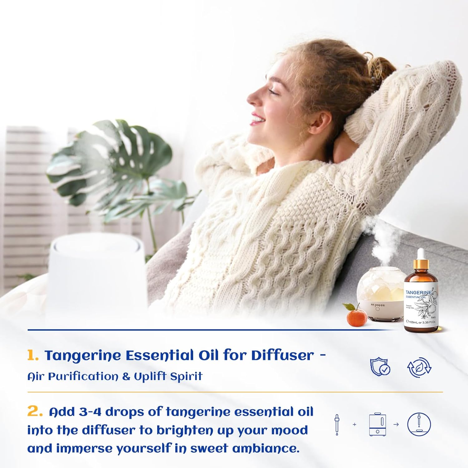- Ingredient & Aroma: Our raw materials are sourced from Italy and extracted through cold pressing of fruits(rind). 100% pure tangerine essential oil has a fresh, slightly floral and a refreshing, sweet sensation