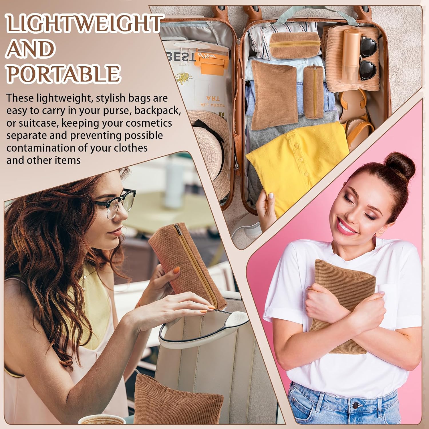 - Material and Attractive Design: the makeup and toiletry travel bag set is mainly crafted from quality corduroy material, ensuring high durability and prolonged service life; The bags feature a vibrant brown color surface, makes them compatible with various styles of outfits