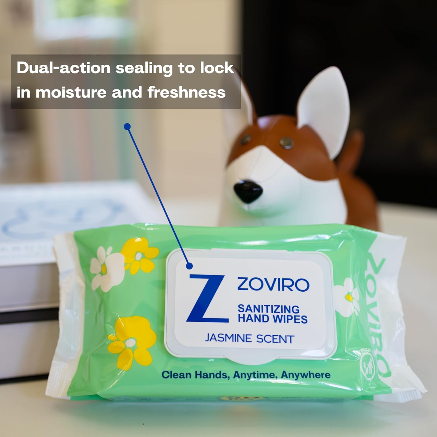 Zoviro Hand Sanitizer Wipes, Jasmine Essential Oils, 100% Viscose Ultra-Soft Wipes, Moisturizing & Non-Sticky, Jasmine Scent, Adults & Kids, 80 Count (Pack of 6)