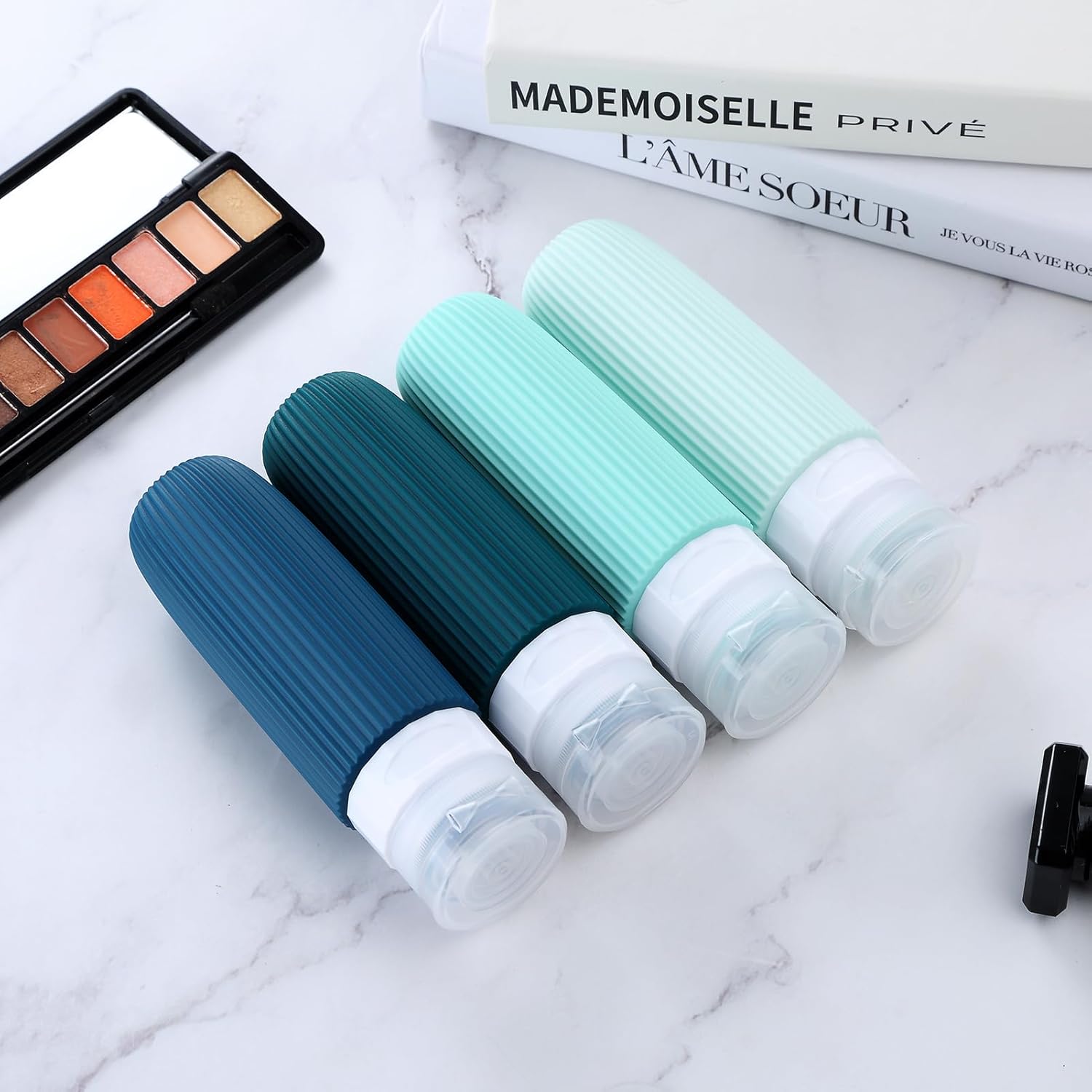- TSA carry on approval: 4 pack 3 oz silicone travel bottles, very suitable for shampoo, conditioner, shower gel, lotion, hand sanitizer and shower gel. It is equipped with a high-quality zipper transparent wash bag, which saves space and allows you to travel long distance freely like a professional.