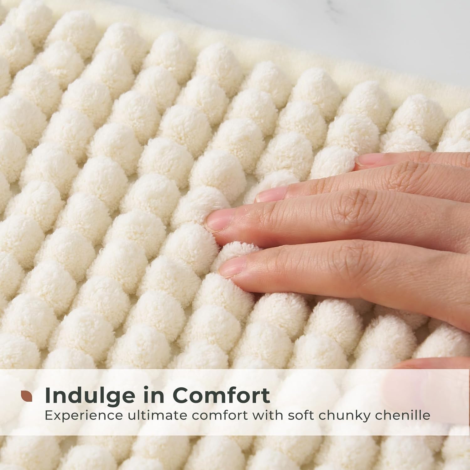 FRESHMINT Thick Chunky Chenille Bathroom Rugs 20"x32", Non Slip Bath Mat for Bathroom Floor, Soft Bathroom Decor Accessories, Cute Shower Mat Water Absorbent, Washable, Cream White