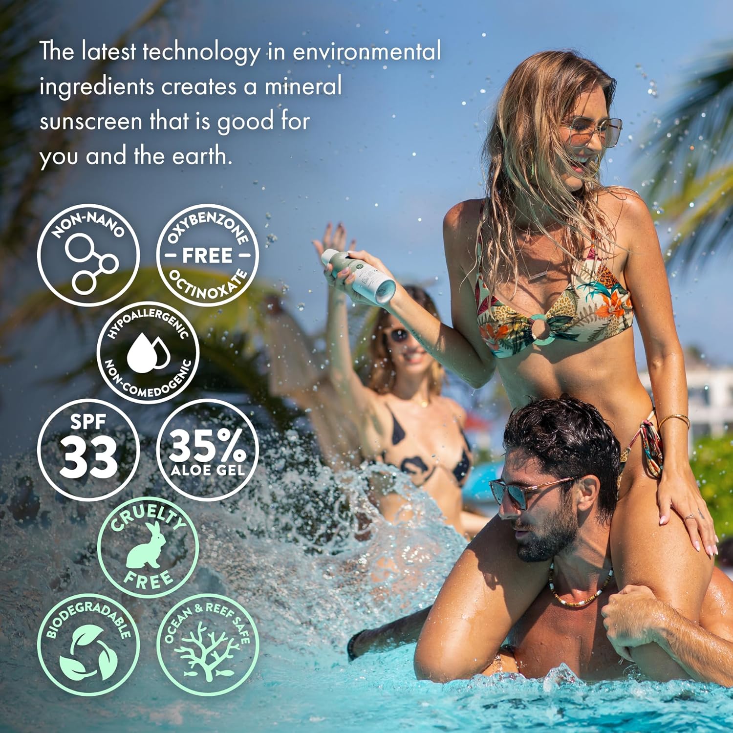 Aloe Up Mineral Sunscreen Lotion SPF 33 Broad Spectrum UVA/UVB Sunscreen Protector for Face and Body-With Gen2 Zinc Oxide and Aloe Vera Gel Dries Clear Reef Safe Coco-Mango Fragrance - 3 Oz