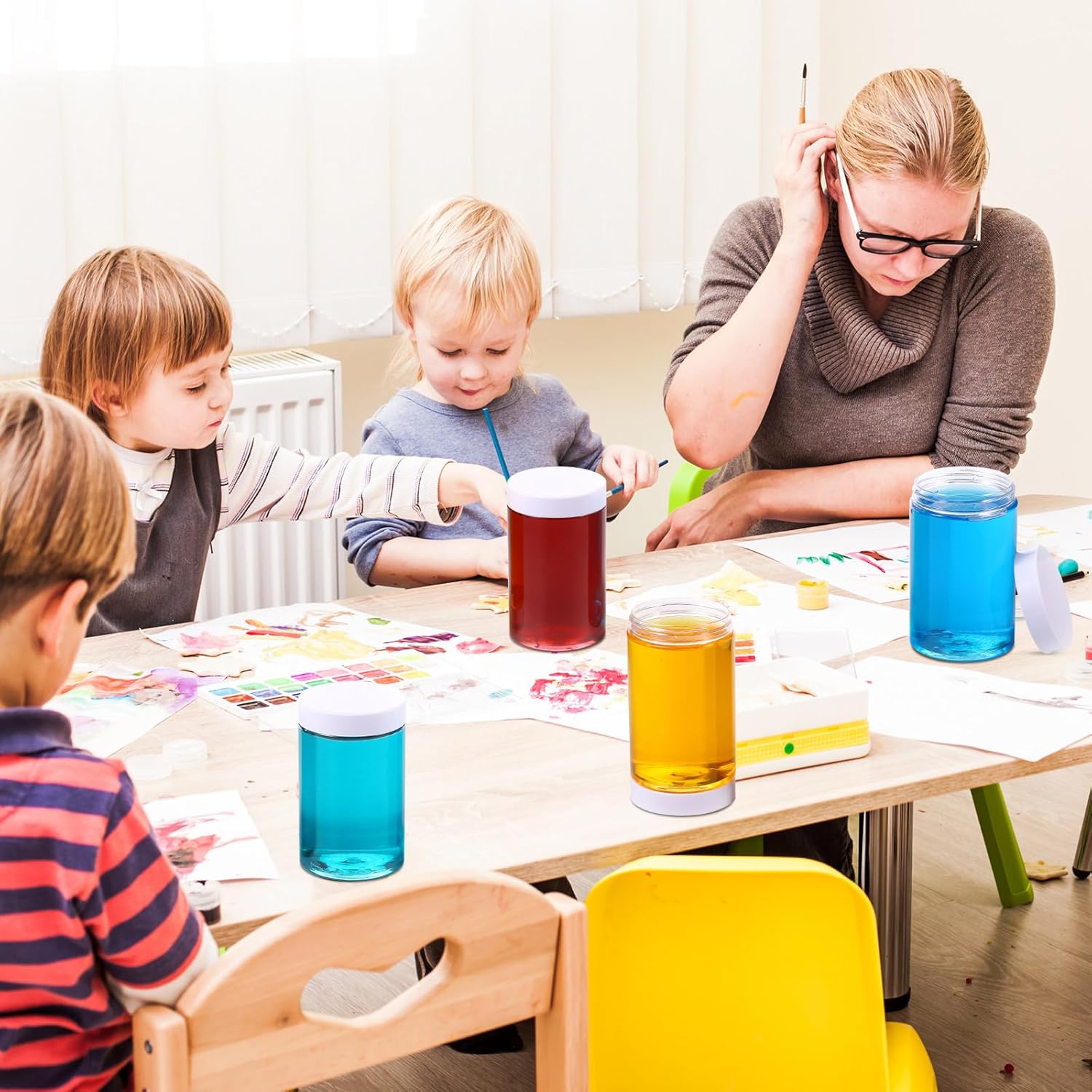 - What you receive: there are 4 pieces plastic jars with white screw-on lids. They are reliable and refillable, measuring about 12 oz in capacity