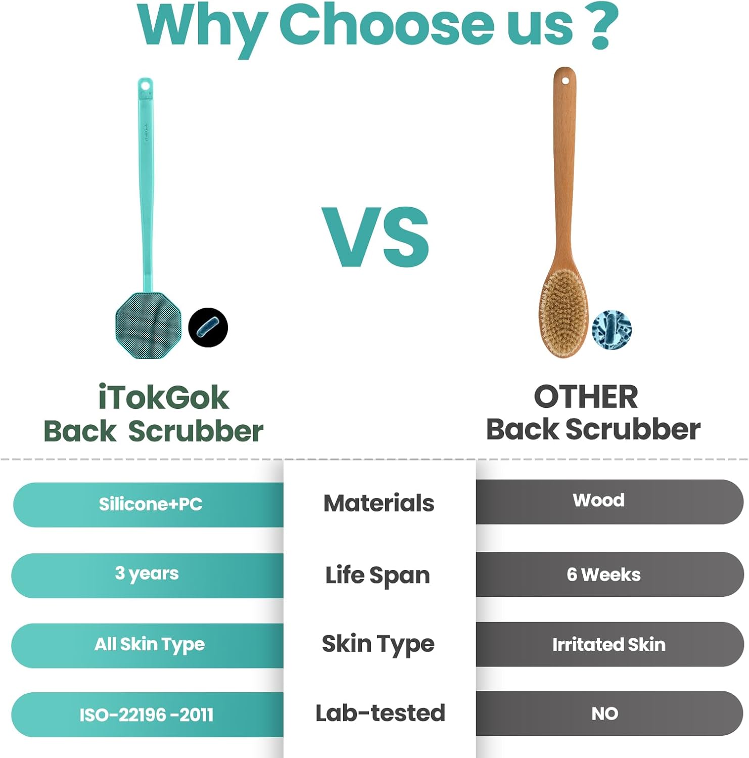 - Distinctive : Compared to other mediocre back scrubbers, ours features an extended design, an anti-slip handle, silver infused into food-grade silicone for a longer lifespan, and exquisite packaging, It is truly worth it.
