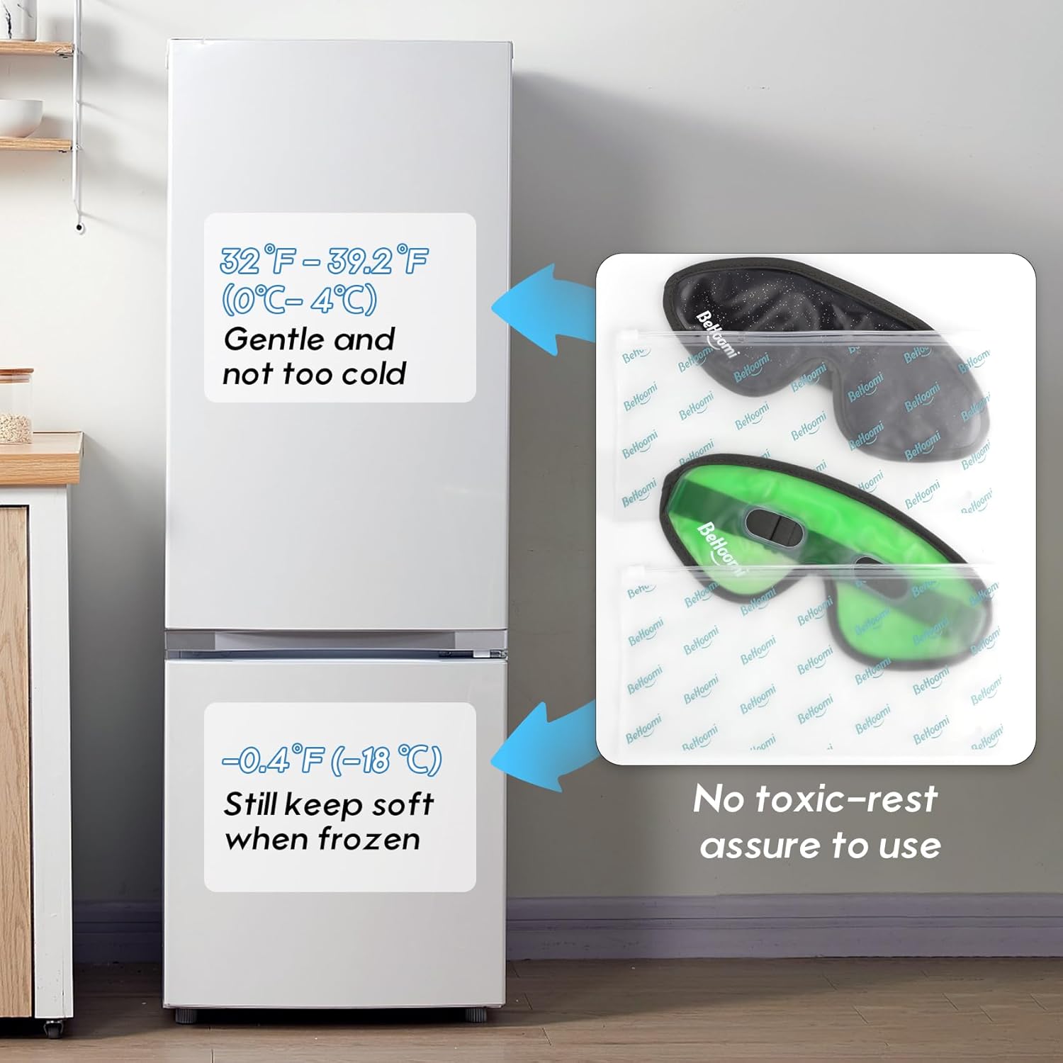 - Ergonomic Deepened Nose Fit: The BeHoomi cooling eye masks is designed with a deepened nose fit, preventing discomfort on the bridge of the nose when wearing the ice eye mask. Its large surface area better fits around your eyes. Cold compress for eyes refresh eyes when needed most and promoting relaxation and energy.