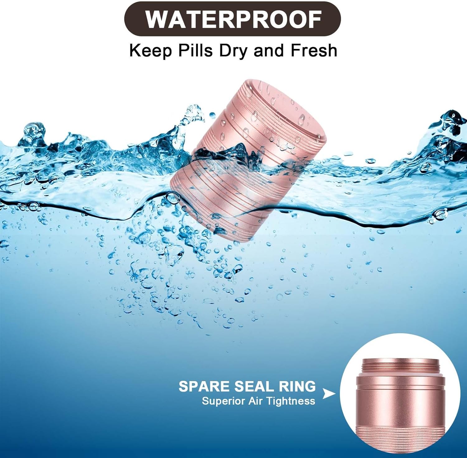 - Waterproof & Airtight: Thanks to its compact thread and silicone gasket, this pill box is completely waterproof and airtight. You can take it with you wherever you go, whether you're at the beach, by the pool, or out in the rain.