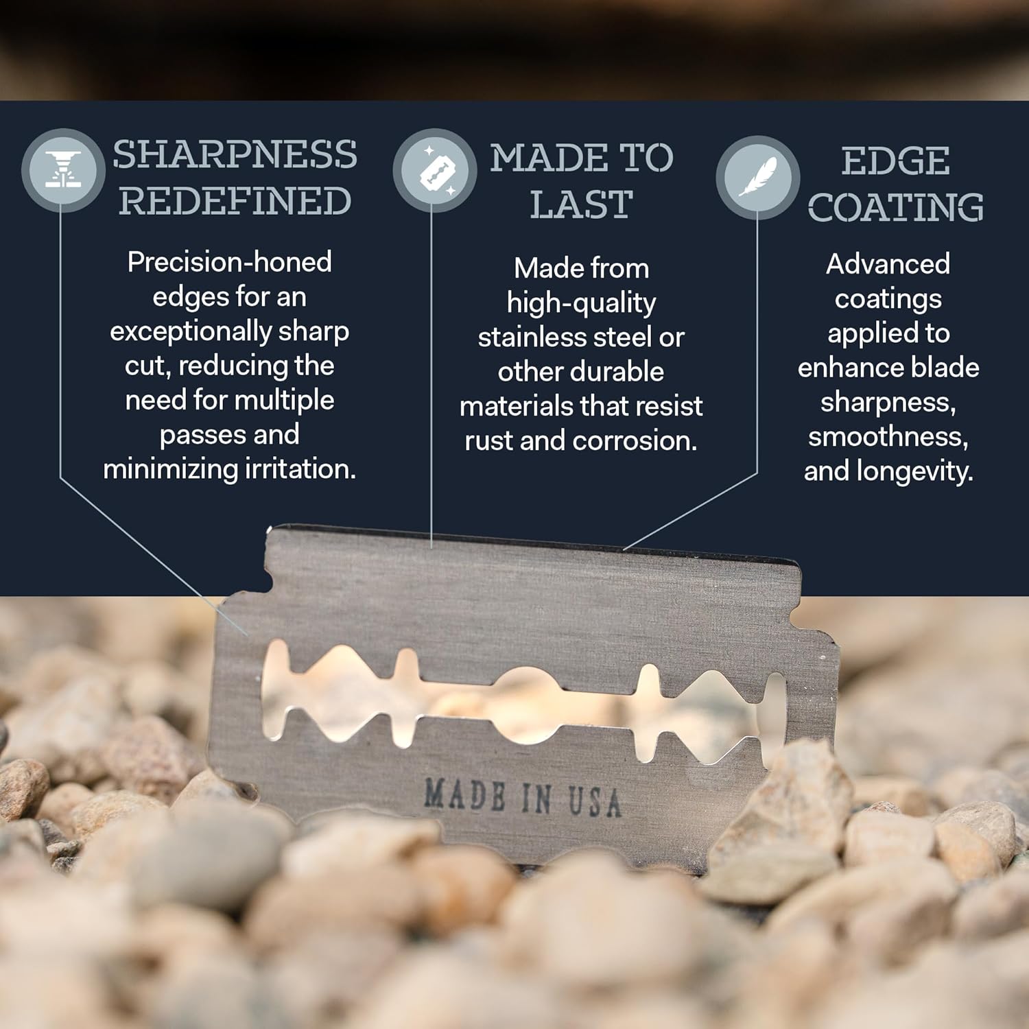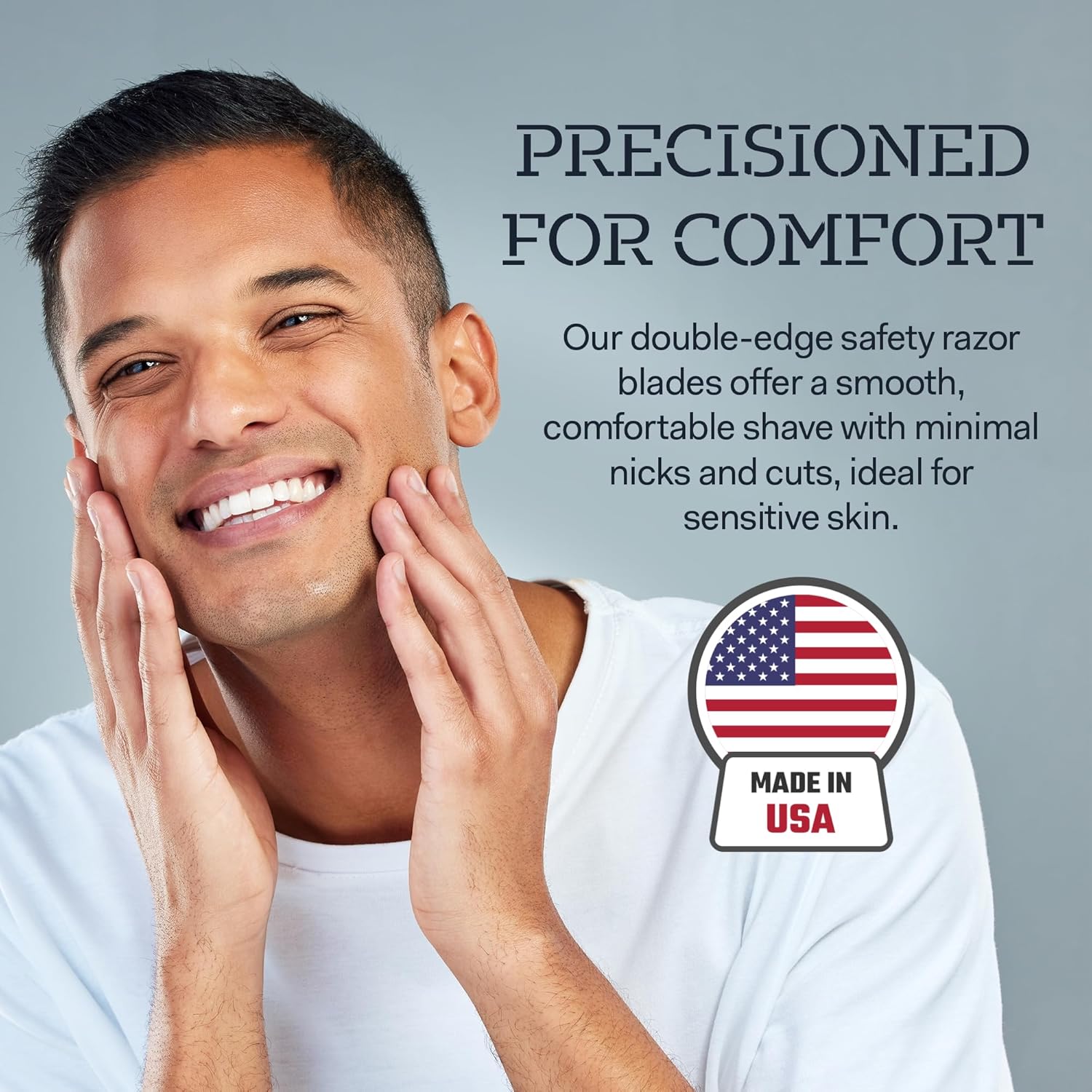 - Made in usa razor blades: premium stainless steel, universal fit double edged razor blades that drop into all standard safety razors.