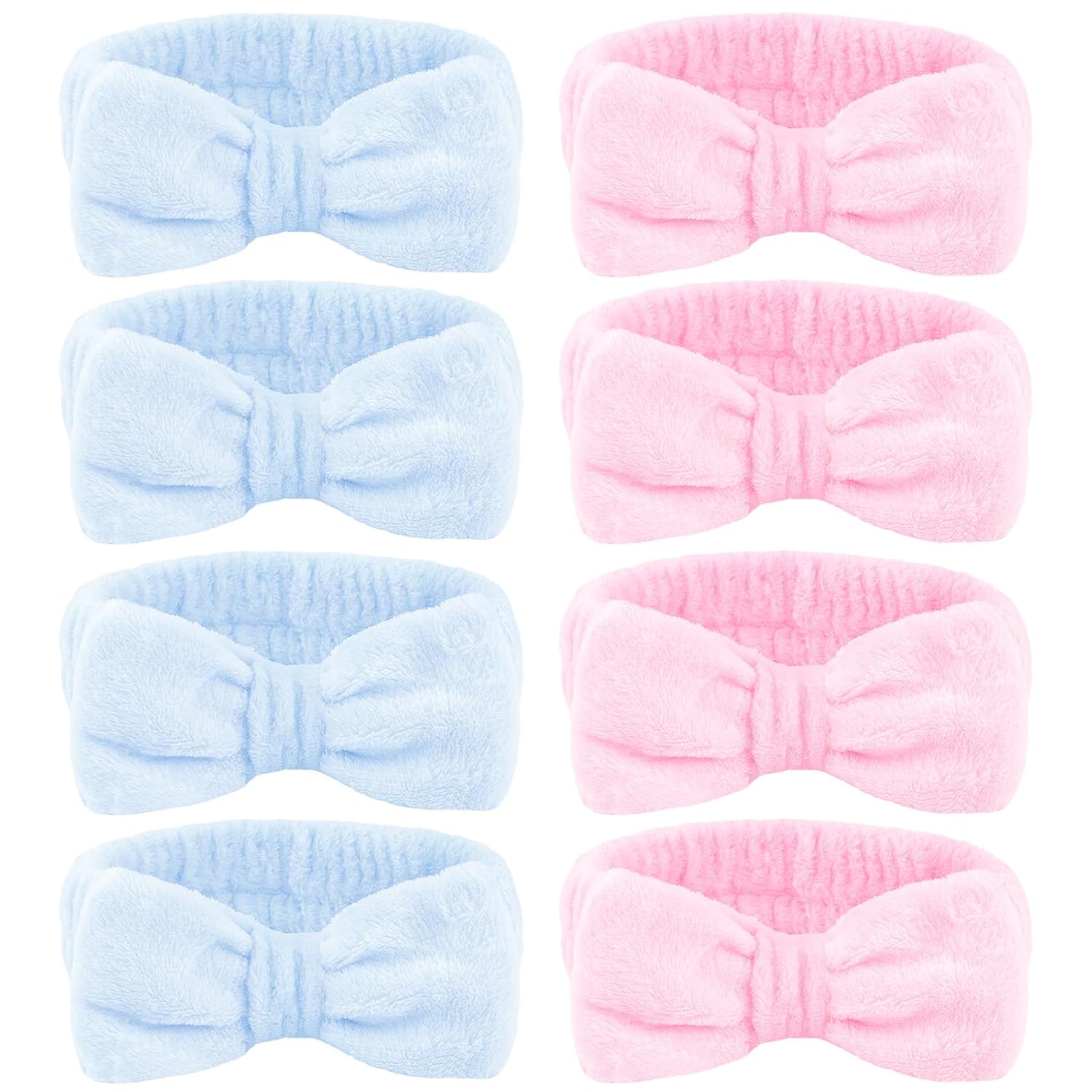 - Durable: These skin care headbands bulk including 4 pcs pink spa head bands and 4 pcs blue spa headbands. Cute bow design, you can sharing these headband with your sisters, family and friends. pink spa headbands are the necessary hair accessories for spa party & bachelorette party.