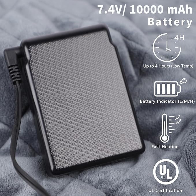 - 5s Instant Heating Technology: Vofuoti battery operated heating pad with a 10000mAh battery to easily switch between 3 heat settings, allowing you to enjoy effective heat at different temperatures, that runs for up to about 4 hours on Low setting, 3 hours on Medium, and 2 hours on High. (You can get an extra battery from our store if you need more heating. ASIN: B09CPXFTCP)