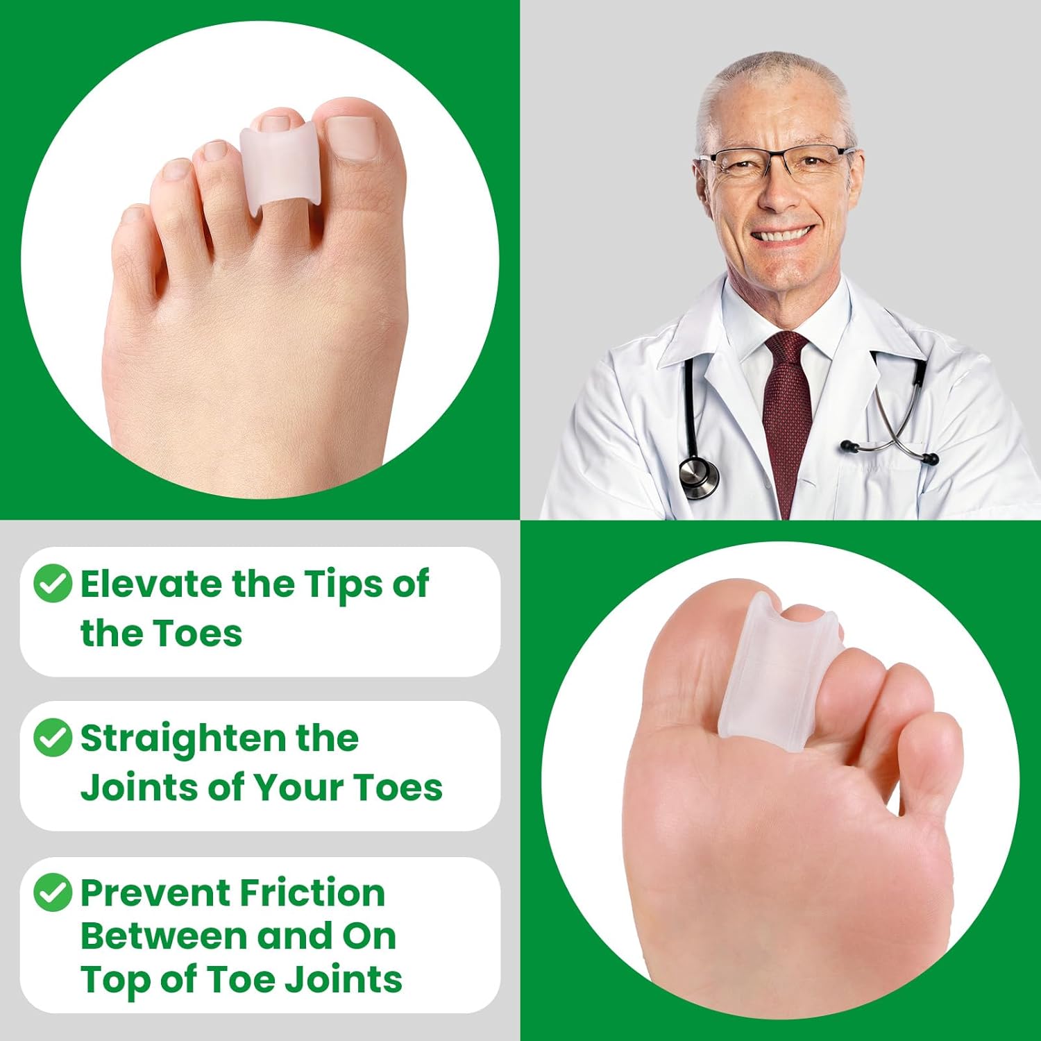 Bukihome Hammertoe Corrector - 6 Pack Toe Straightener to Curled Toes, Broken toe, Bunion Corrector for Women and Men, Large Size (Clear)