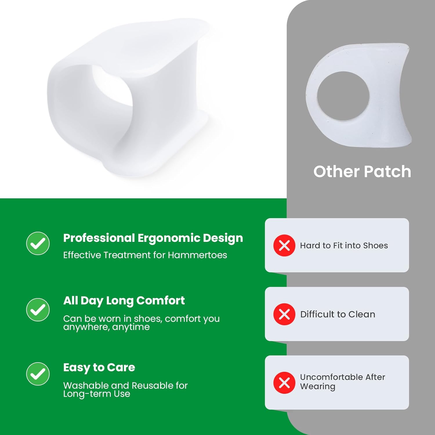 - [Soft & Comfortable]: Crafted from premium medical-grade silicone gel, these hammer toe straightener correctors are lightweight and stretchy. They're so flexible, it's like a gentle hug for your feet while still delivering the utmost comfort and toe separation you crave.