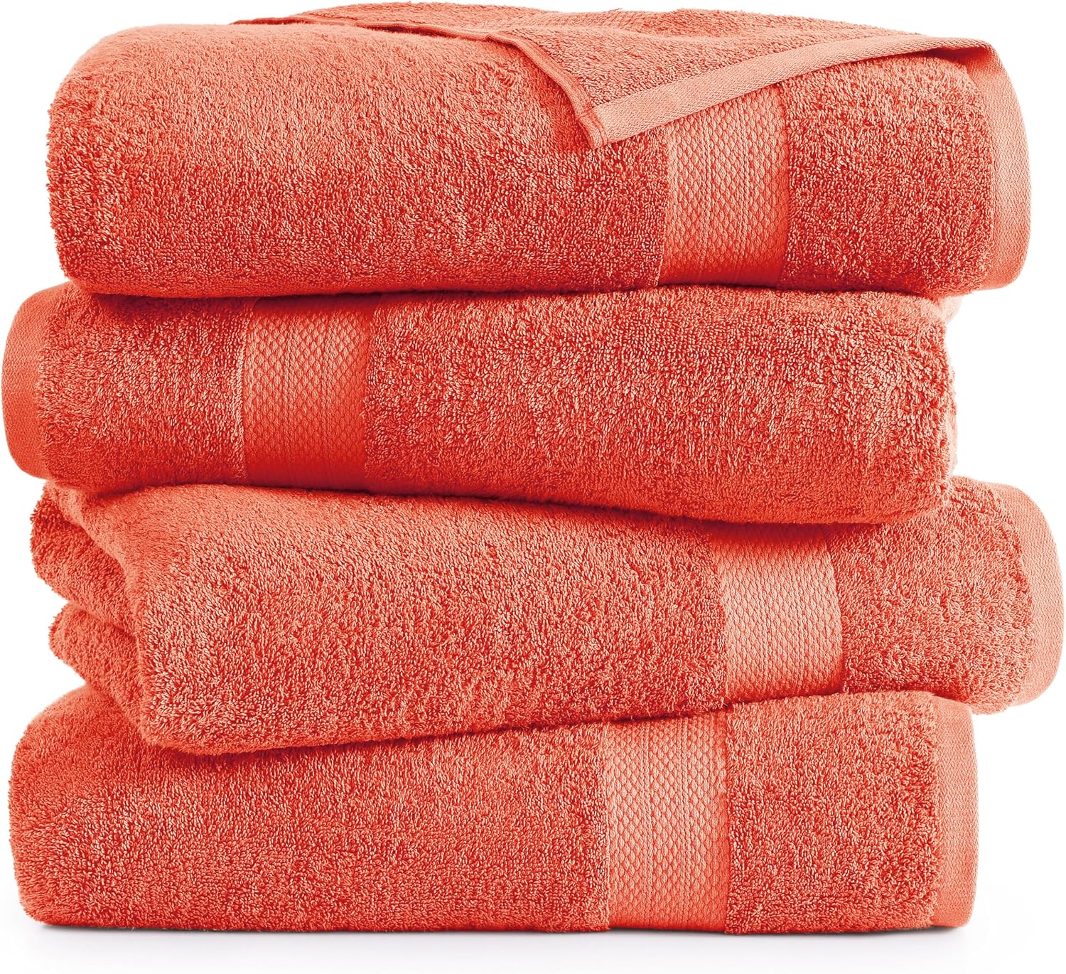 LANE LINEN 100% Cotton Ring Spun Bath Towels (28"x54") - 4 Pieces - Large Towels for Bathroom - Quick Drying, Soft & Absorbent Large Shower Towel Set - Used in Gym, Hotel, Spa, Home - Living Coral