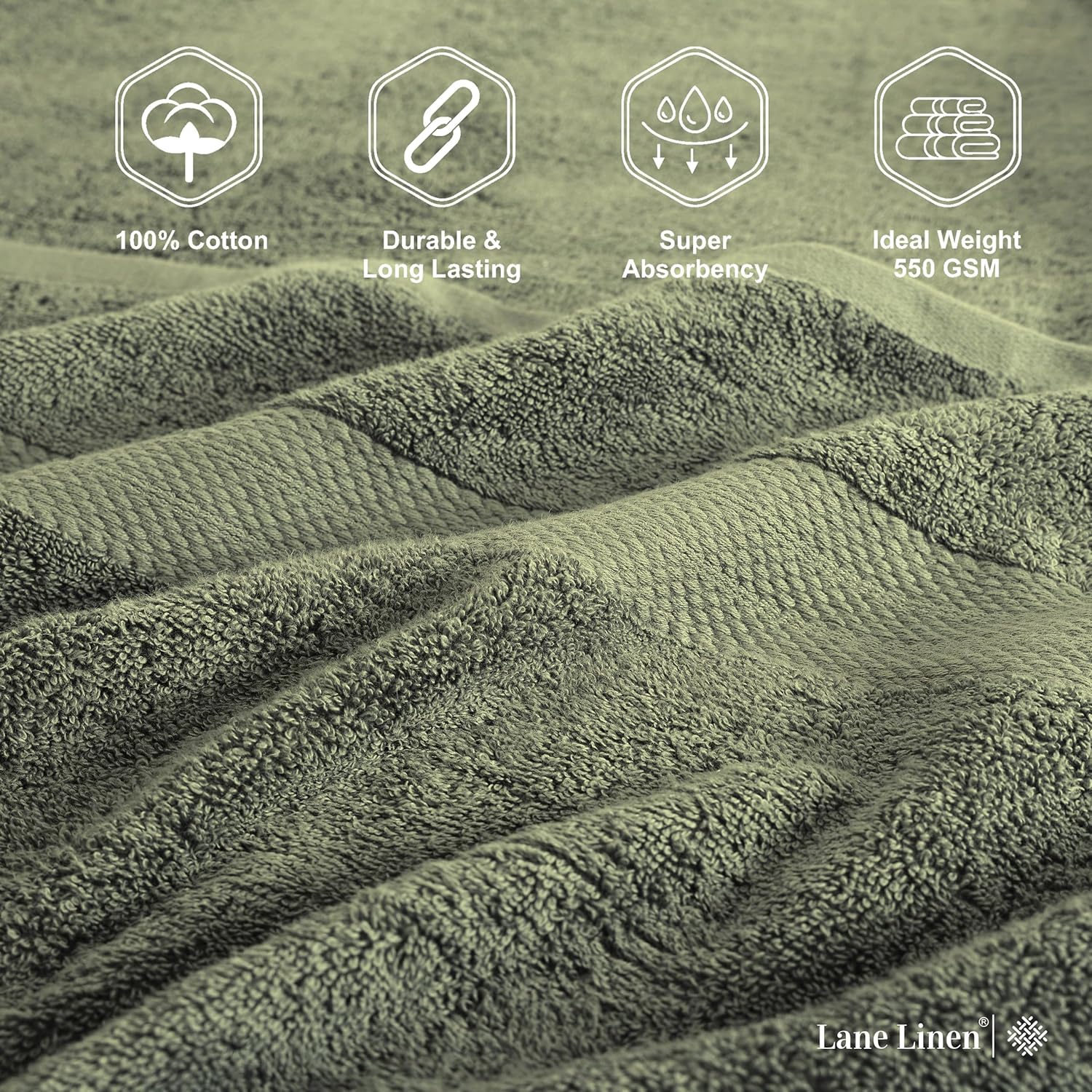 LANE LINEN 100% Cotton 4 Pack Bath Sheets (35"x66") - Ring Spun, Extra Large Cotton Bath Towels Set - Quick Dry, Soft & Absorbent Oversized Towel Set - Remains Soft After Multiple Washes - Oil Green