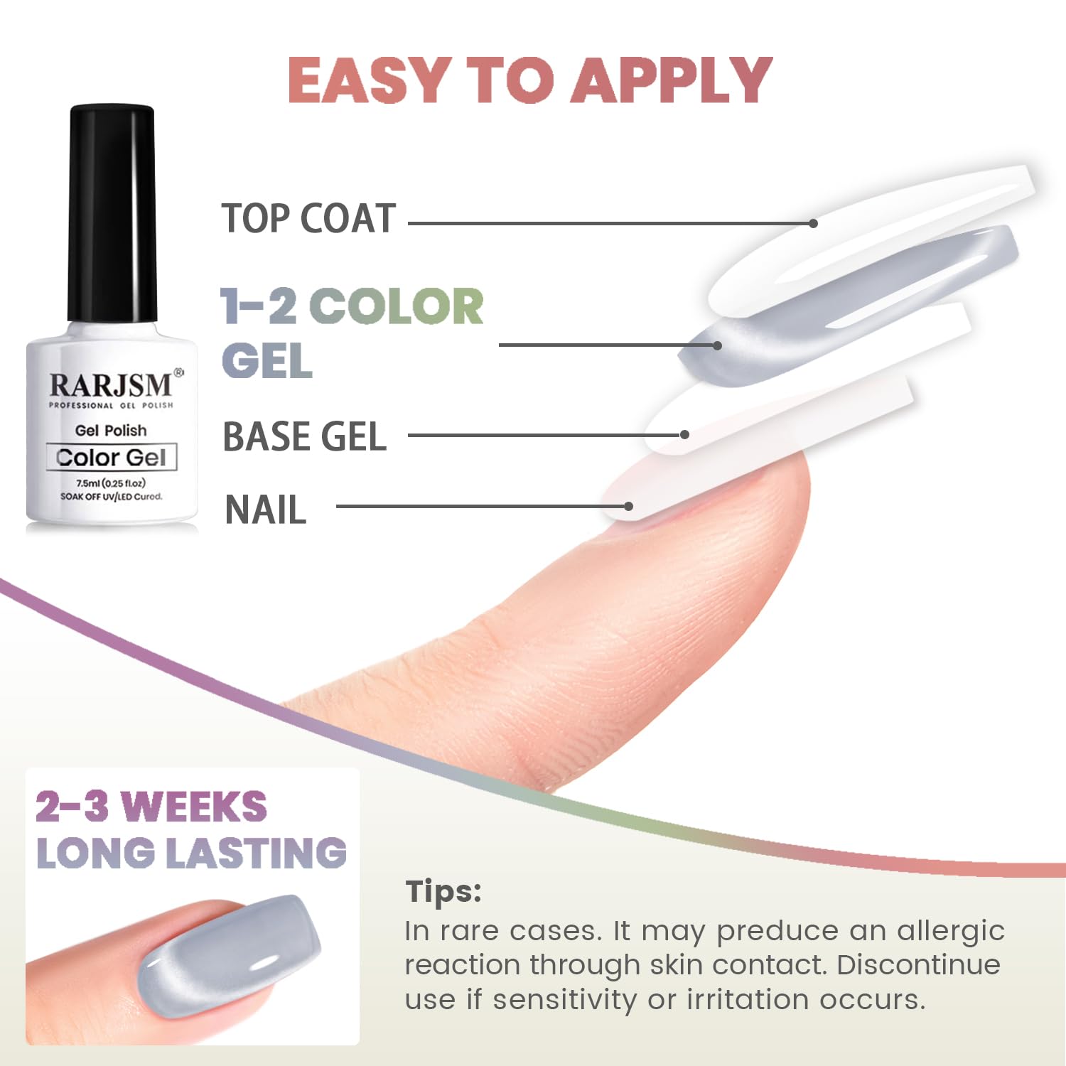 RARJSM Moonlight Cat Eye Gel Nail Polish Set 6 Pcs Smoothie Ceramic Glitter Shimmer Grape Purple Silver White Blue Green Pink Velvet Mirror Cateye Gel Polish with Magnetic Stick UV LED Curing Require