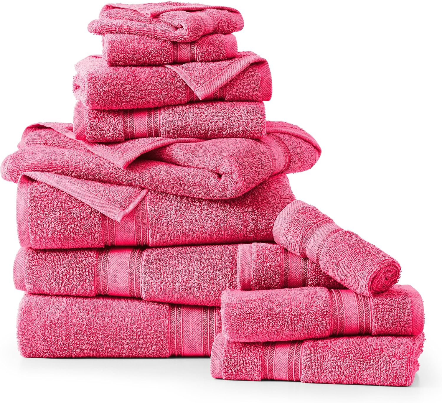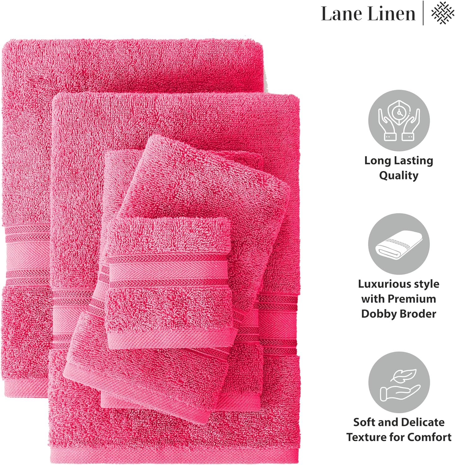 LANE LINEN Luxury Bath Towels Set - 12 Piece (4 Bath Towels, 4 Hand Towels, 4 Washcloths), 100% Cotton, Zero Twist, Super Soft & Extra Absorbent - Fuchsia